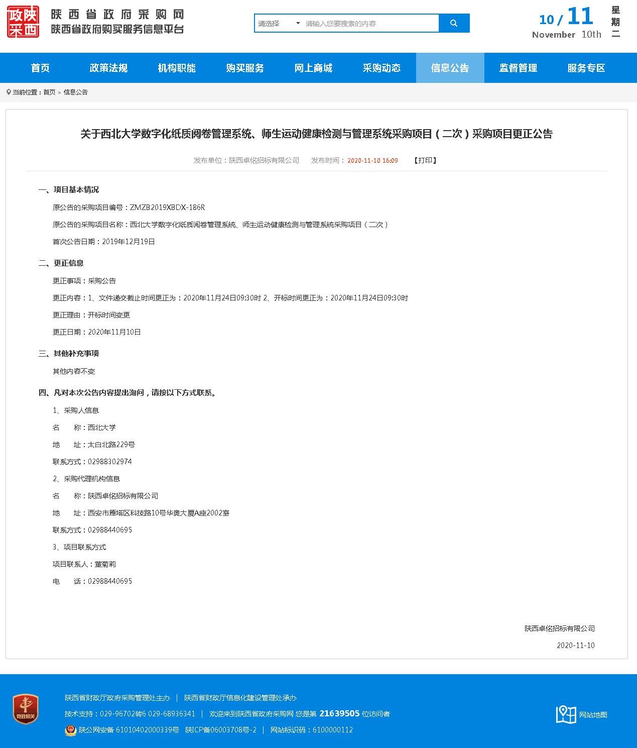 8868体育登录数字化纸质阅卷管理系统、师生运动健康检测与管理系统采购项目(二次)采购项目更正公告
