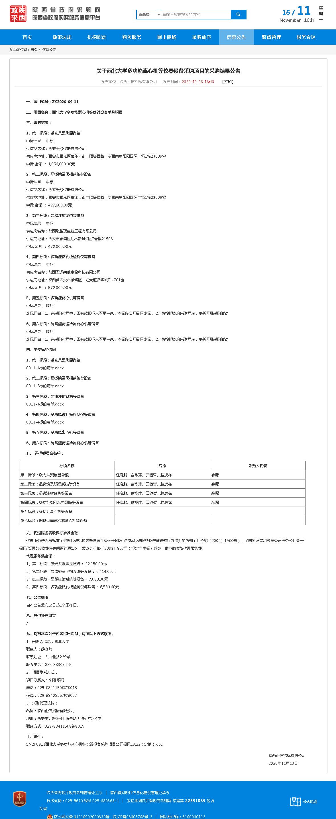 关于8868体育登录多功能离心机等仪器设备采购项目的采购结果公告