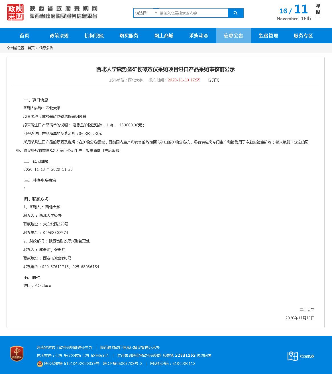 8868体育登录磁势垒矿物磁选仪采购项目进口产品采购审核前公示