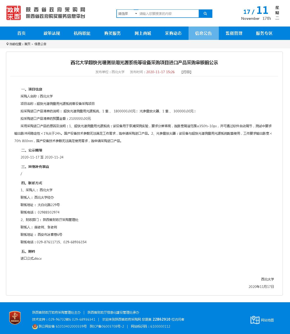 8868体育登录超快光谱测量用光源系统等设备采购项目进口产品采购审核前公示