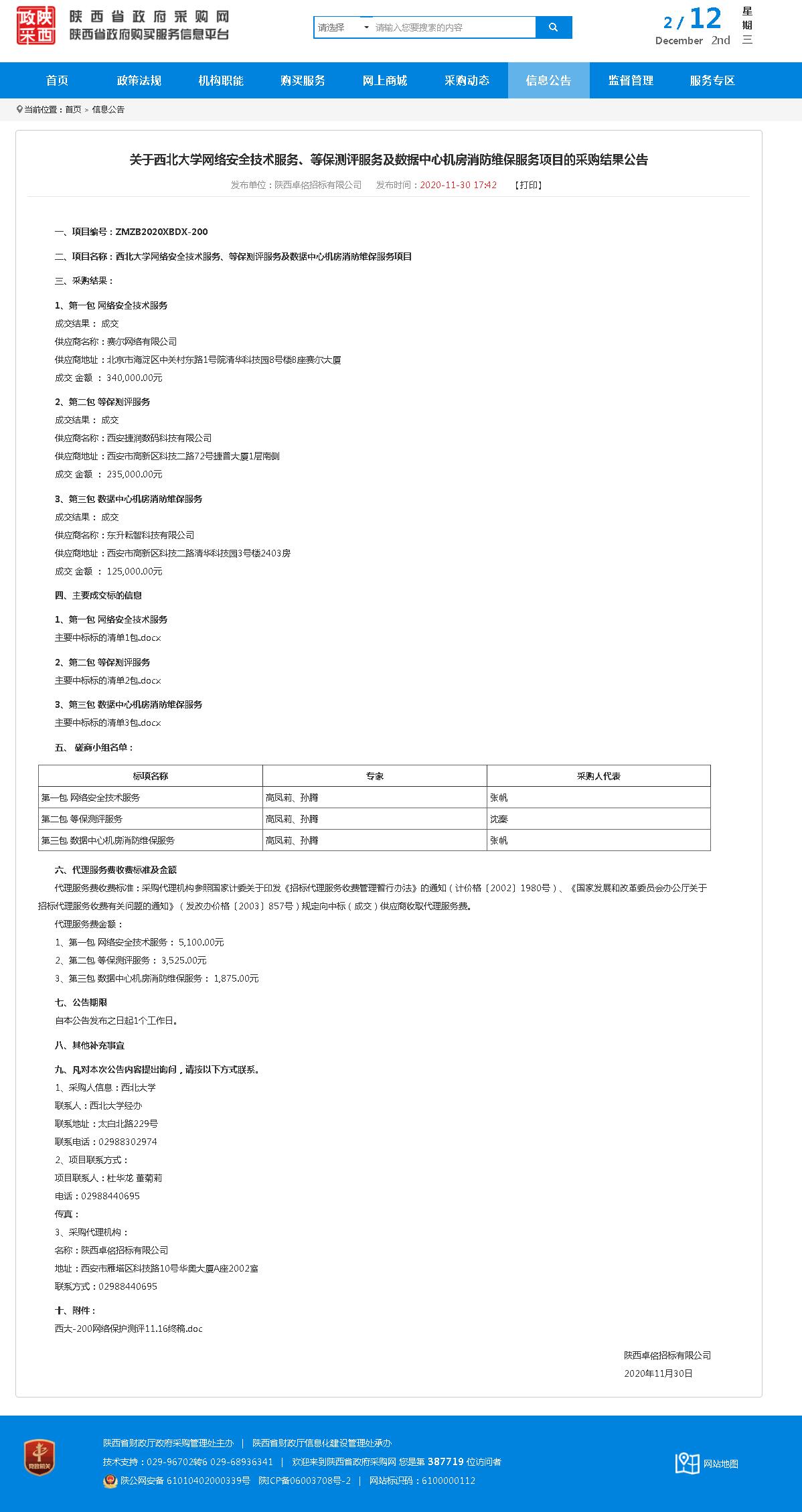 8868体育登录网络安全技术服务、等保测评服务及数据中心机房消防维保服务项目的采购结果公告