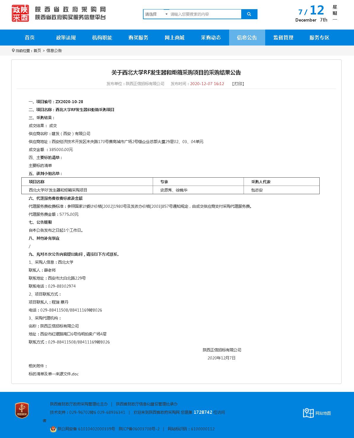 8868体育登录RF发生器和炬箱采购项目的采购结果公告