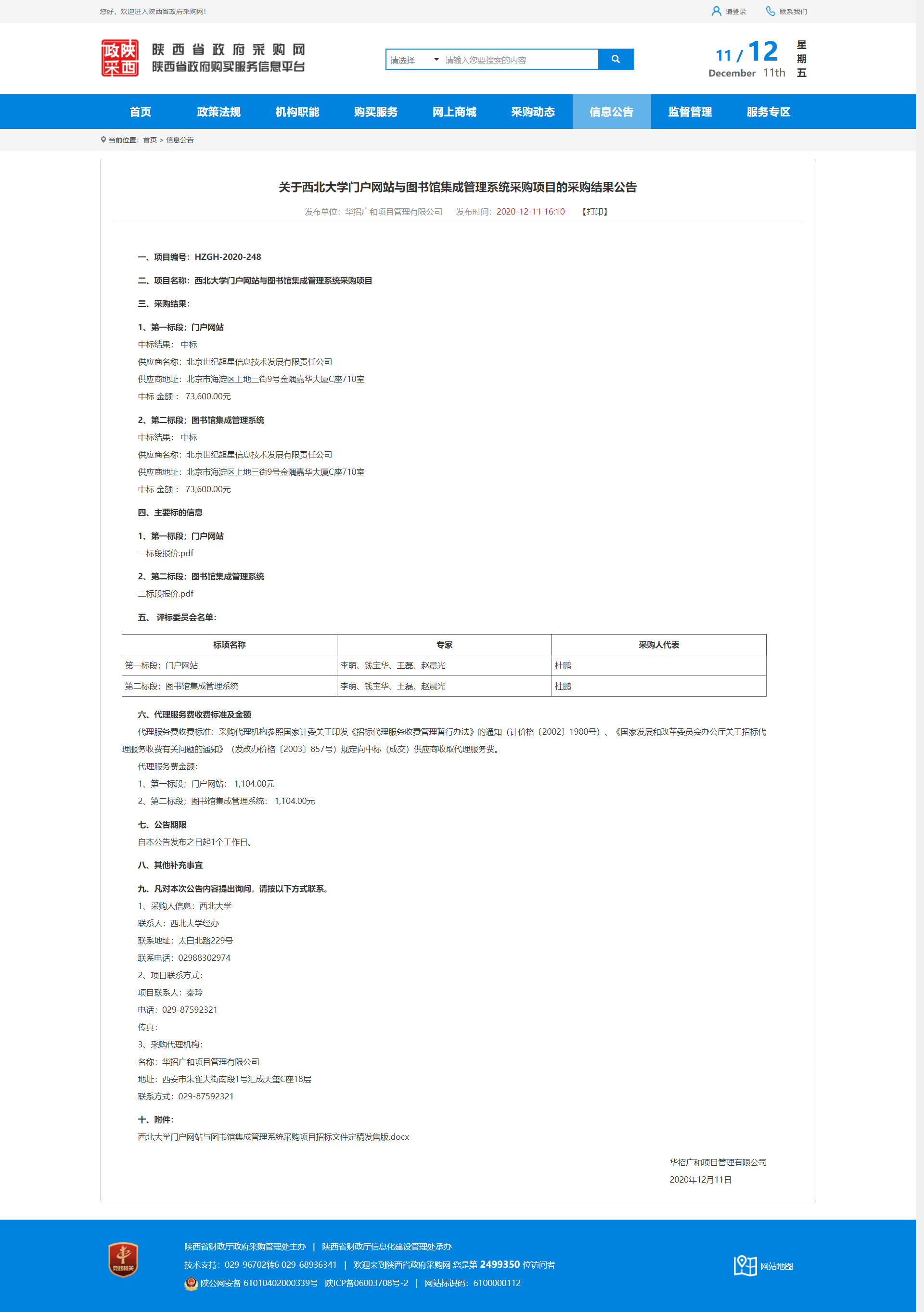关于8868体育登录门户网站与图书馆集成管理系统采购项目的采购结果公告 作者: 编辑:薛利娟 时间:2020-12-11 原公告地址:http://www.ccgp-shaanxi.gov.cn/notice/noticeDetail.do?noticeguid=8a85be3275d5d5c2017650d7c2df14aa
