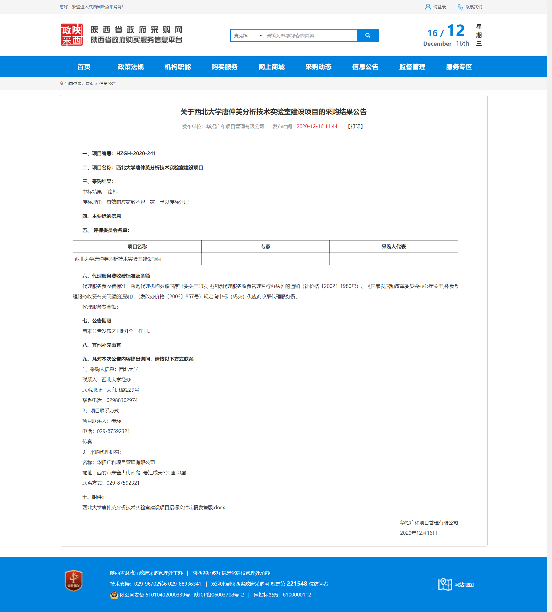 关于8868体育登录唐仲英分析技术实验室建设项目的采购结果公告 作者: 编辑:薛利娟 时间:2020-12-16 原公告地址:http://www.ccgp-shaanxi.gov.cn/notice/noticeDetail.do?noticeguid=8a85be31765f9a2a017669a24474710e