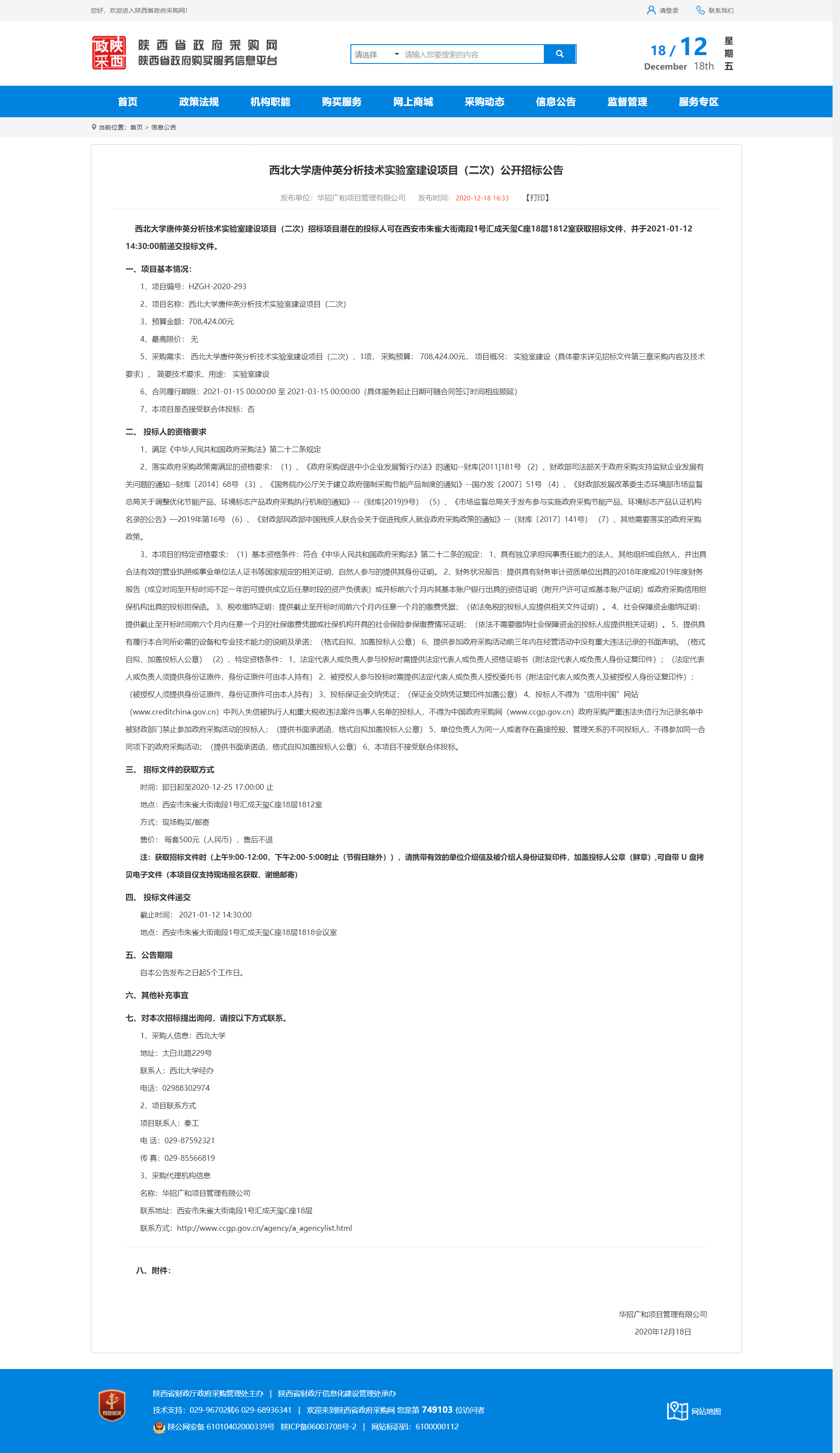 8868体育登录唐仲英分析技术实验室建设项目(二次)公开招标公告 作者: 编辑:薛利娟 时间:2020-12-18 原公告地址:http://www.ccgp-shaanxi.gov.cn/notice/noticeDetail.do?noticeguid=8a85be32765f9c9b017674e6dded7b19