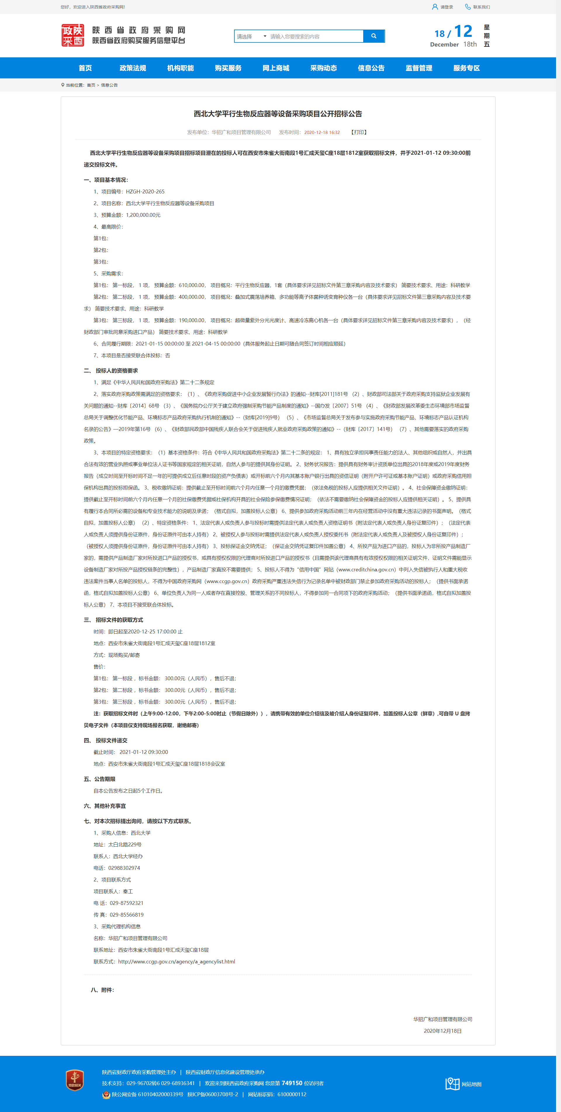 8868体育登录平行生物反应器等设备采购项目公开招标公告 作者: 编辑:薛利娟 时间:2020-12-18 原公告地址:http://www.ccgp-shaanxi.gov.cn/notice/noticeDetail.do?noticeguid=8a85be32765f9c9b017674d0094477c2