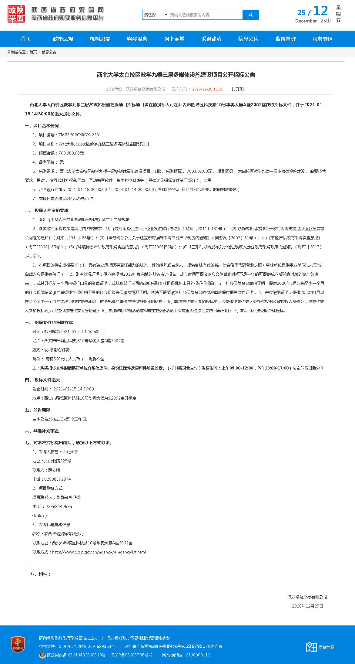 8868体育登录太白校区教学九楼三层多媒体设施建设项目公开招标公告