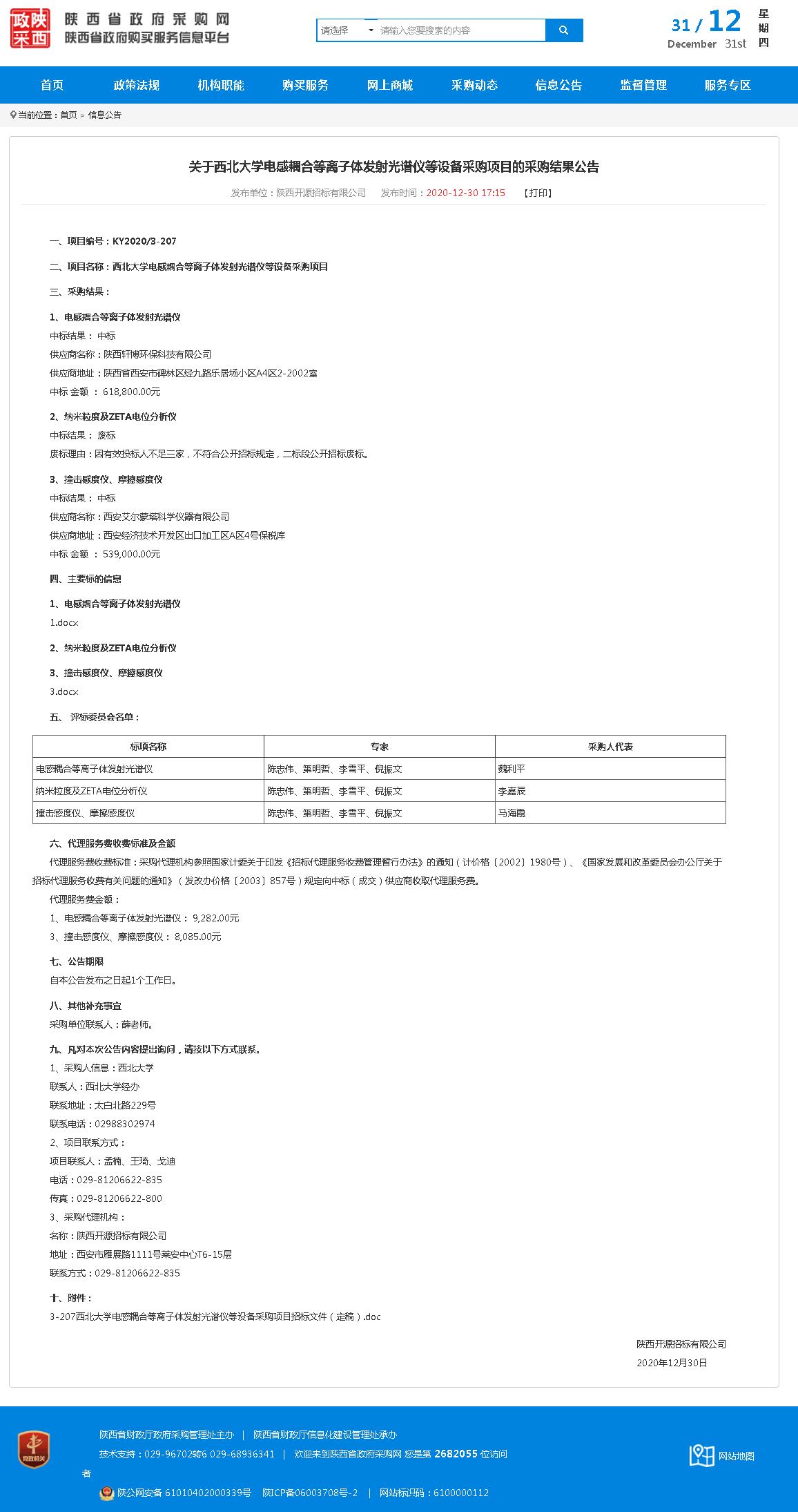 8868体育登录电感耦合等离子体发射光谱仪等设备采购项目的采购结果公告