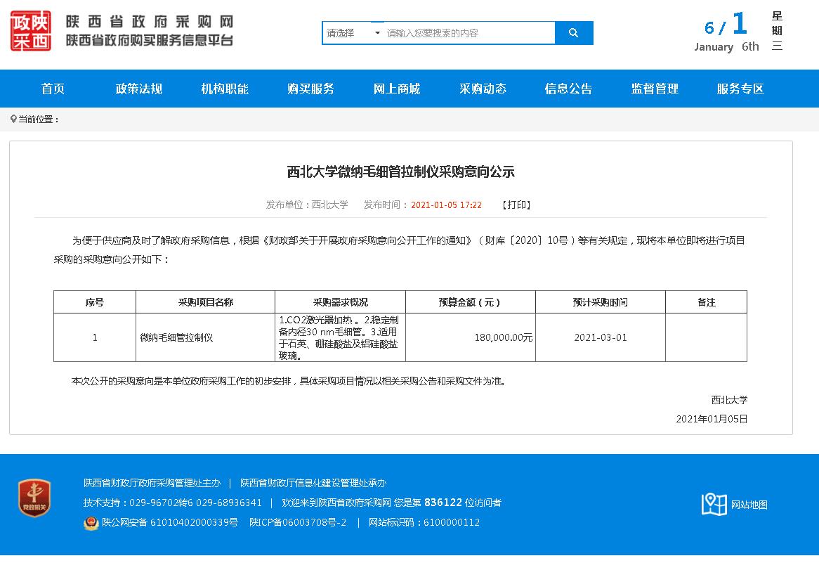 8868体育登录微纳毛细管拉制仪采购意向公示