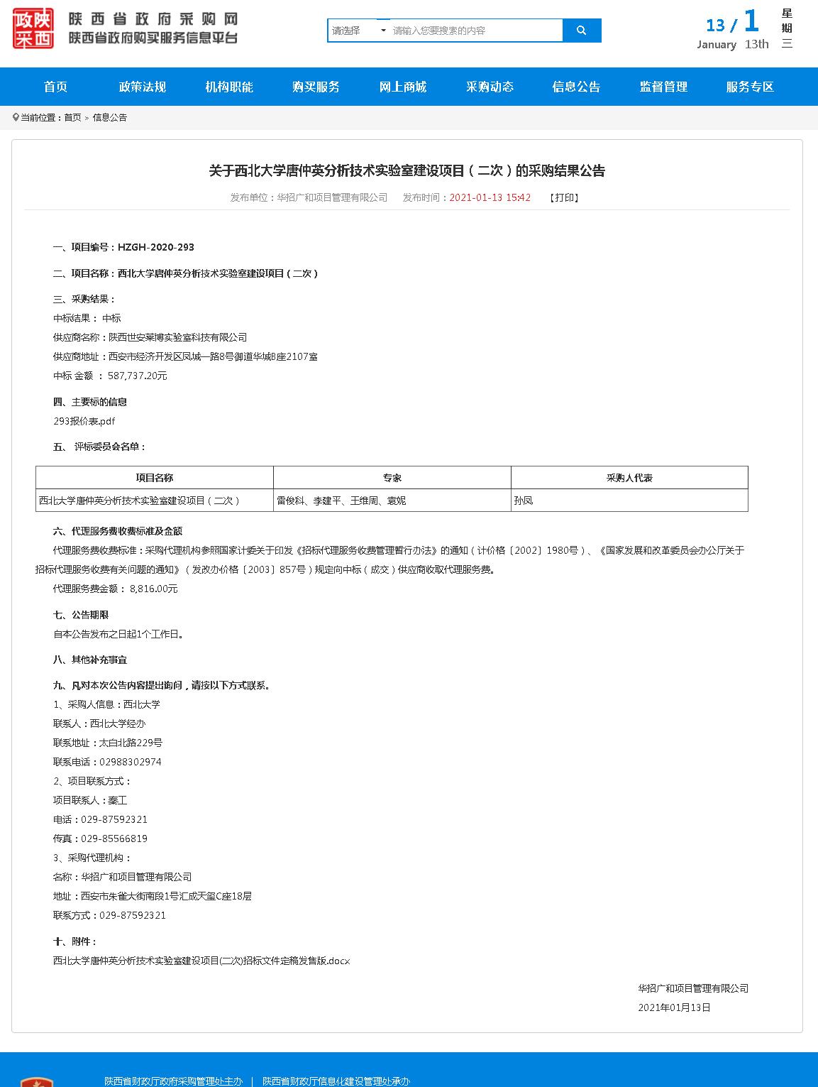 关于8868体育登录唐仲英分析技术实验室建设项目(二次)的采购结果公告