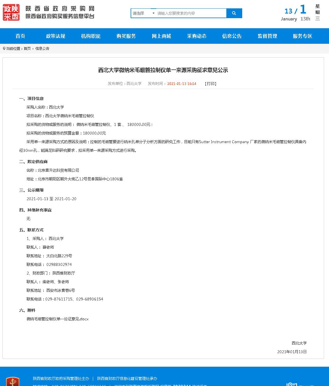 8868体育登录微纳米毛细管拉制仪单一来源采购征求意见公示