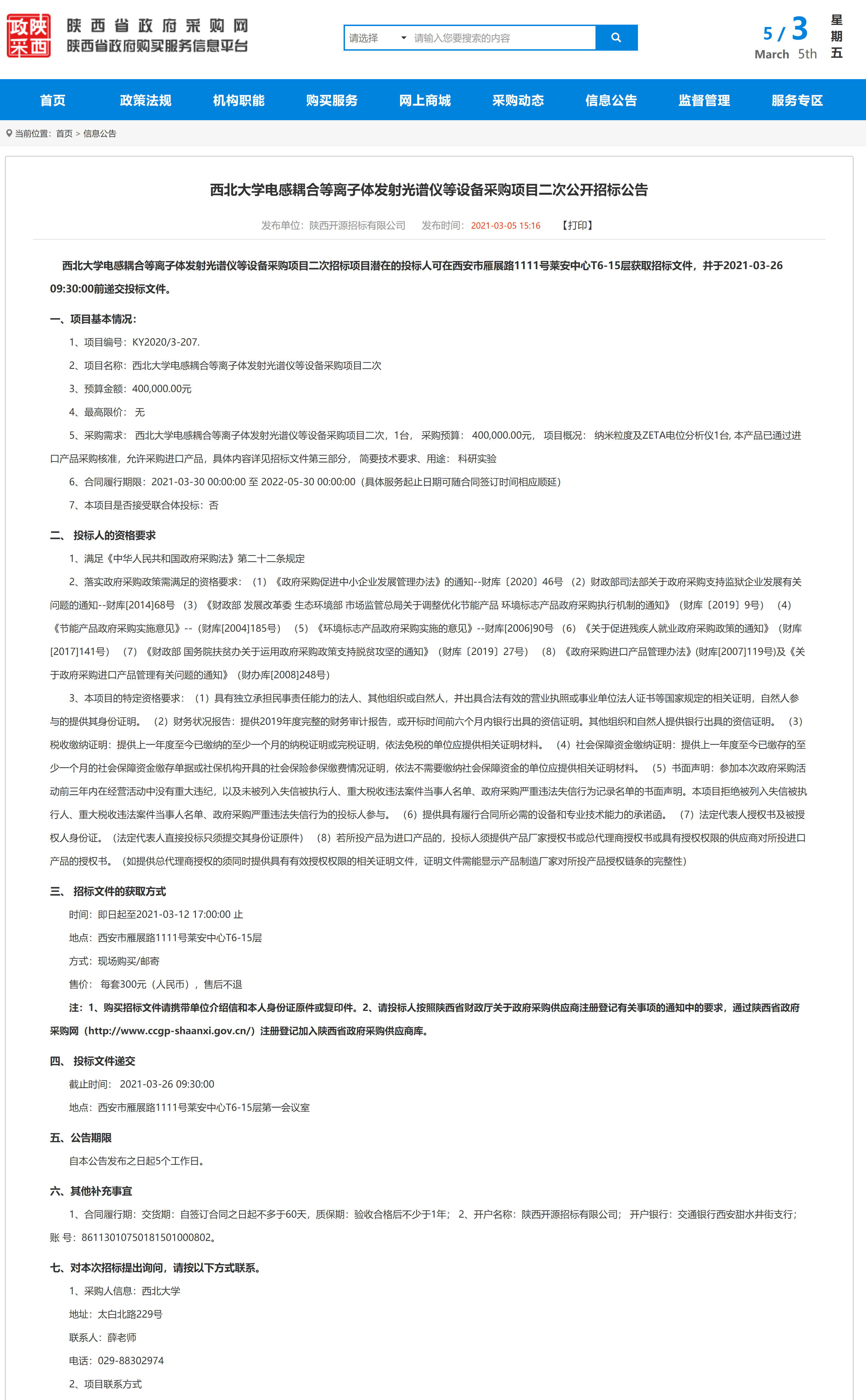 8868体育登录电感耦合等离子体发射光谱仪等设备采购项目二次公开招标公告