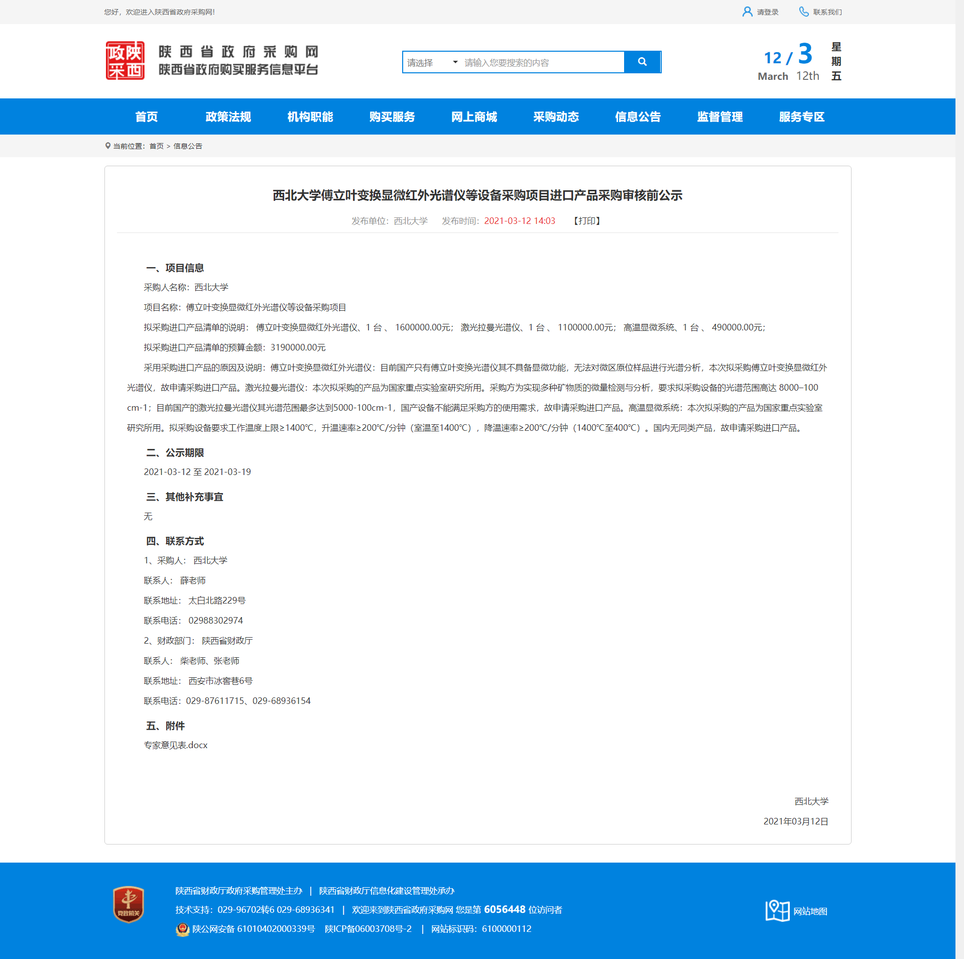 8868体育登录傅立叶变换显微红外光谱仪等设备采购项目进口产品采购审核前公示 作者: 编辑:薛利娟 时间:2021-03-12 原公告地址:http://www.ccgp-shaanxi.gov.cn/notice/noticeDetail.do?noticeguid=8a85be3377b2eca3017823fb30ad533f