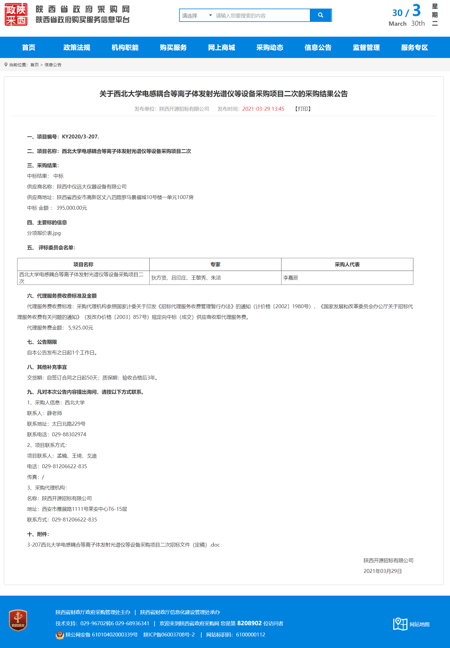 8868体育登录电感耦合等离子体发射光谱仪等设备采购项目二次的采购结果公告