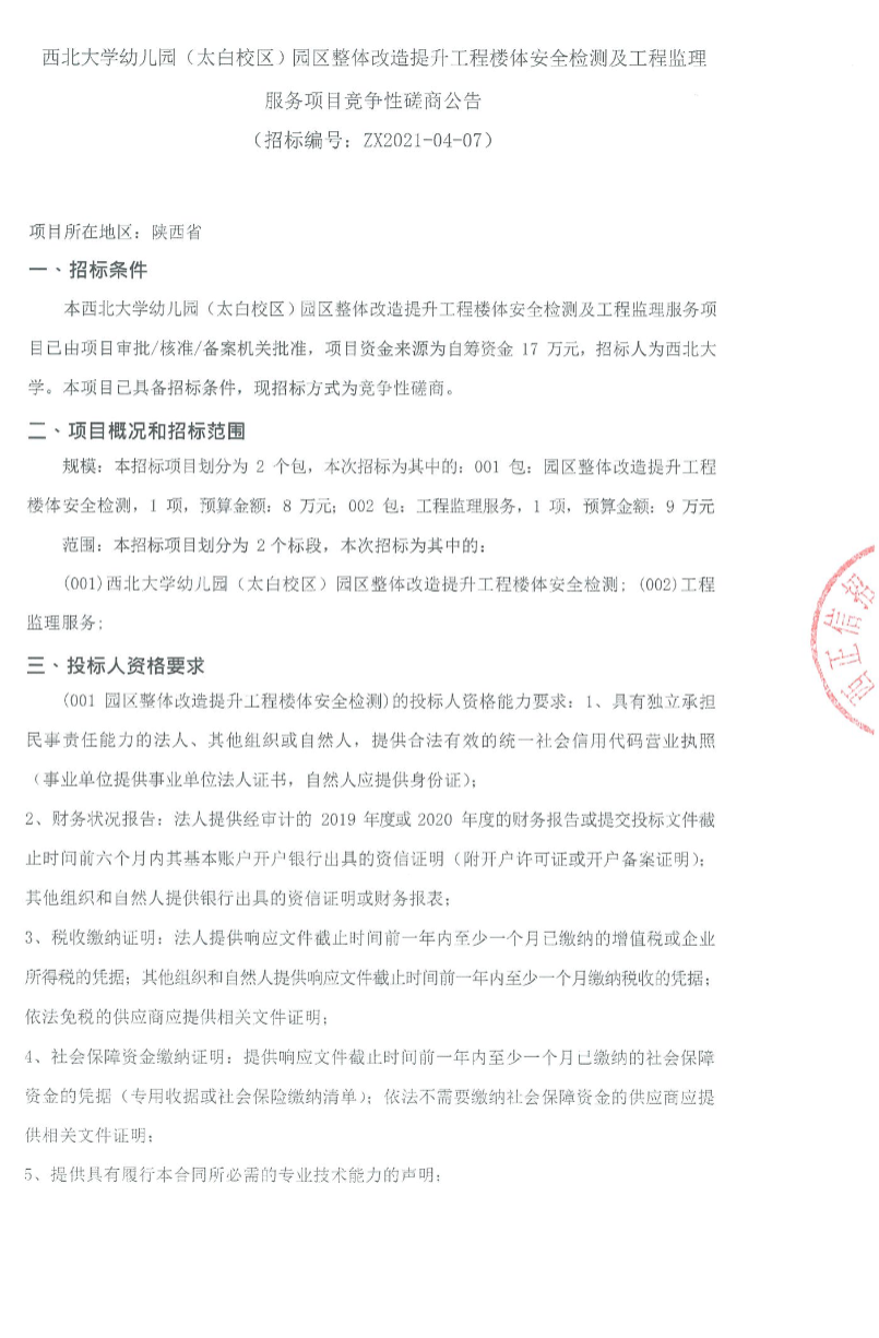 8868体育登录幼儿园(太白校区)园区整体改造提升工程楼体安全检测及工程监理服务项目