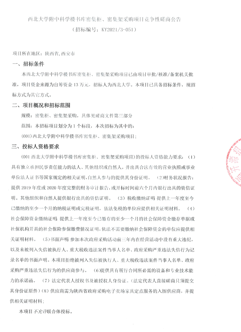 8868体育登录附中科学楼书库密集柜、密集架采购项目竞争性磋商公告
