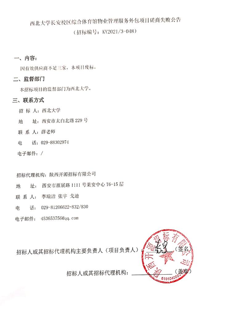 8868体育登录长安校区综合体育馆物业管理服务外包项目磋商失败公告