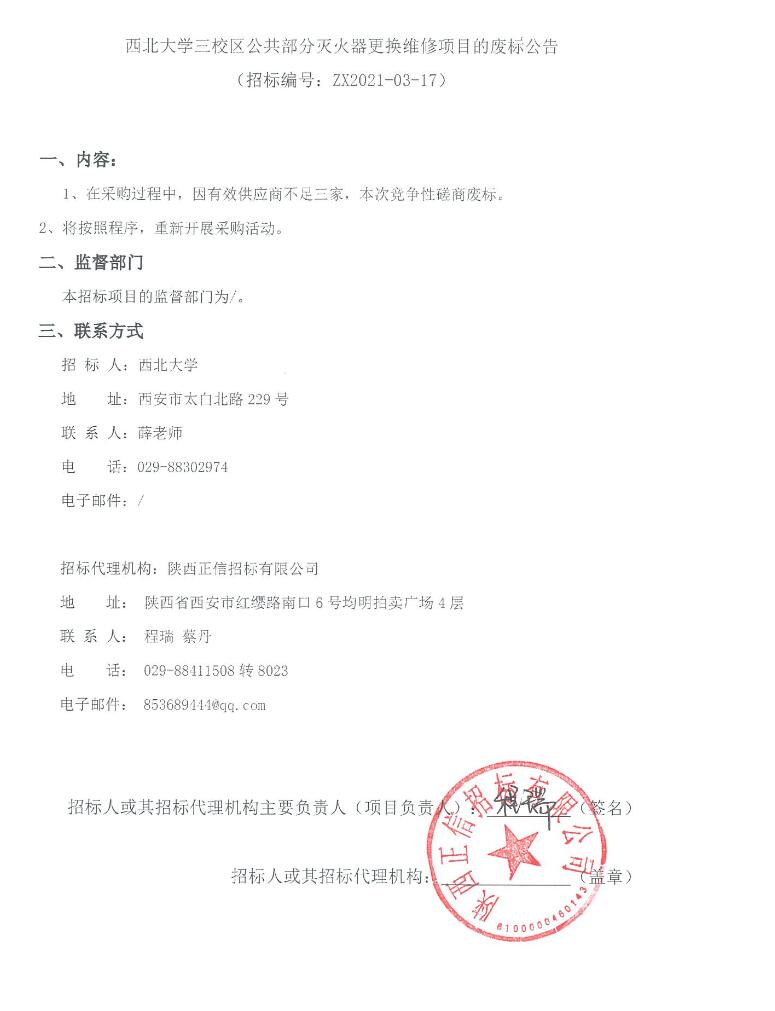 8868体育登录三校区公共部分灭火器更换维修项目的废标公告