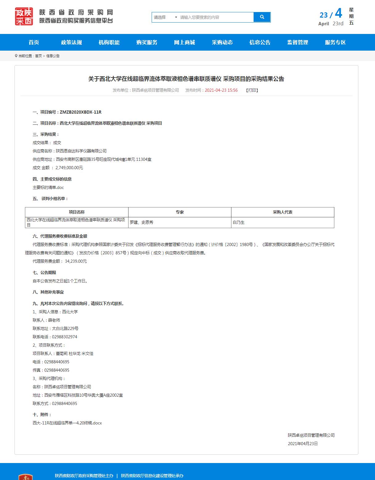 8868体育登录在线超临界流体萃取液相色谱串联质谱仪 采购项目的采购结果公告