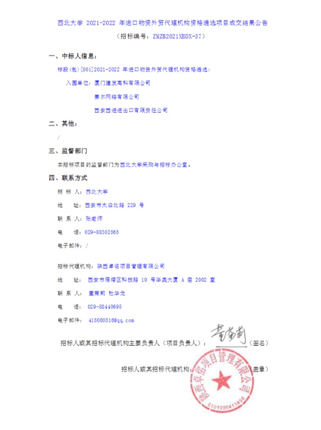 8868体育登录2021-2022年进口物资外贸代理机构资格遴选项目成交结果公告