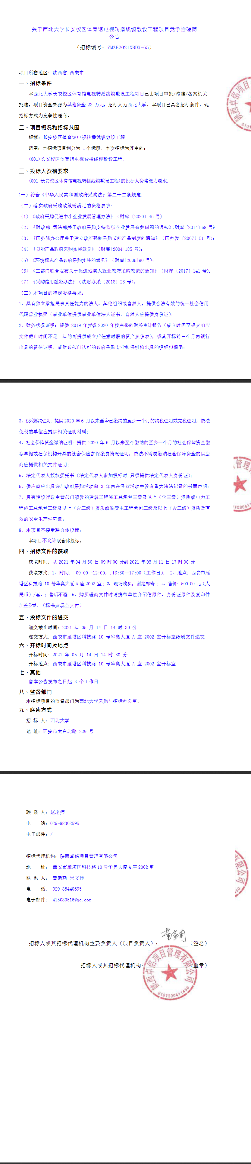 8868体育登录长安校区体育馆电视转播线缆敷设工程项目竞争性磋商公告