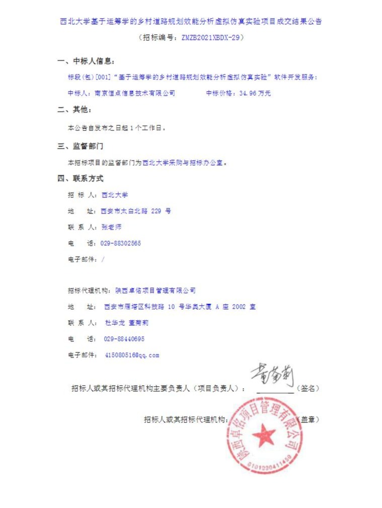 8868体育登录基于运筹学的乡村道路规划效能分析虚拟仿真实验项目成交结果公告