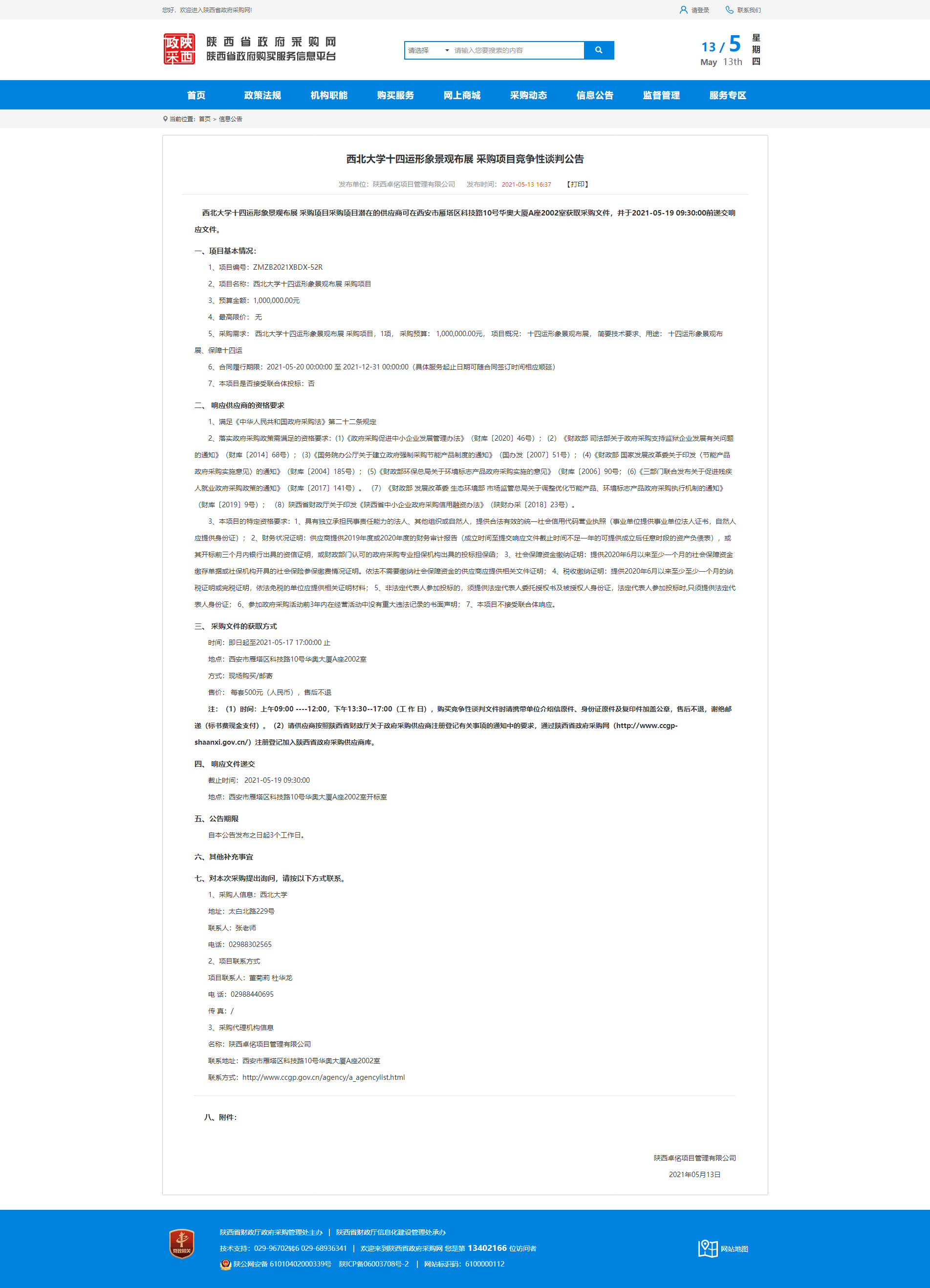 8868体育登录十四运形象景观布展采购项目竞争性谈判公告