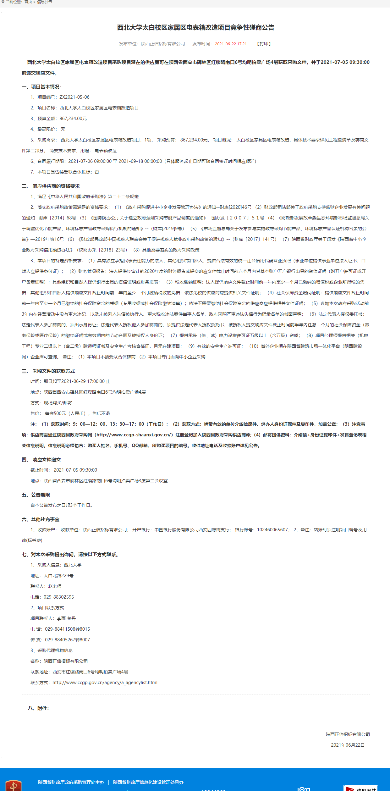 8868体育登录太白校区家属区电表箱改造项目竞争性磋商公告