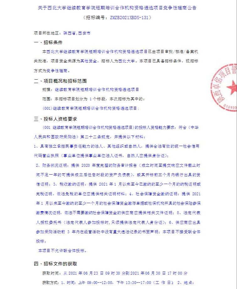 8868体育登录继续教育学院短期培训合作机构资格遴选项目竞争性磋商公告