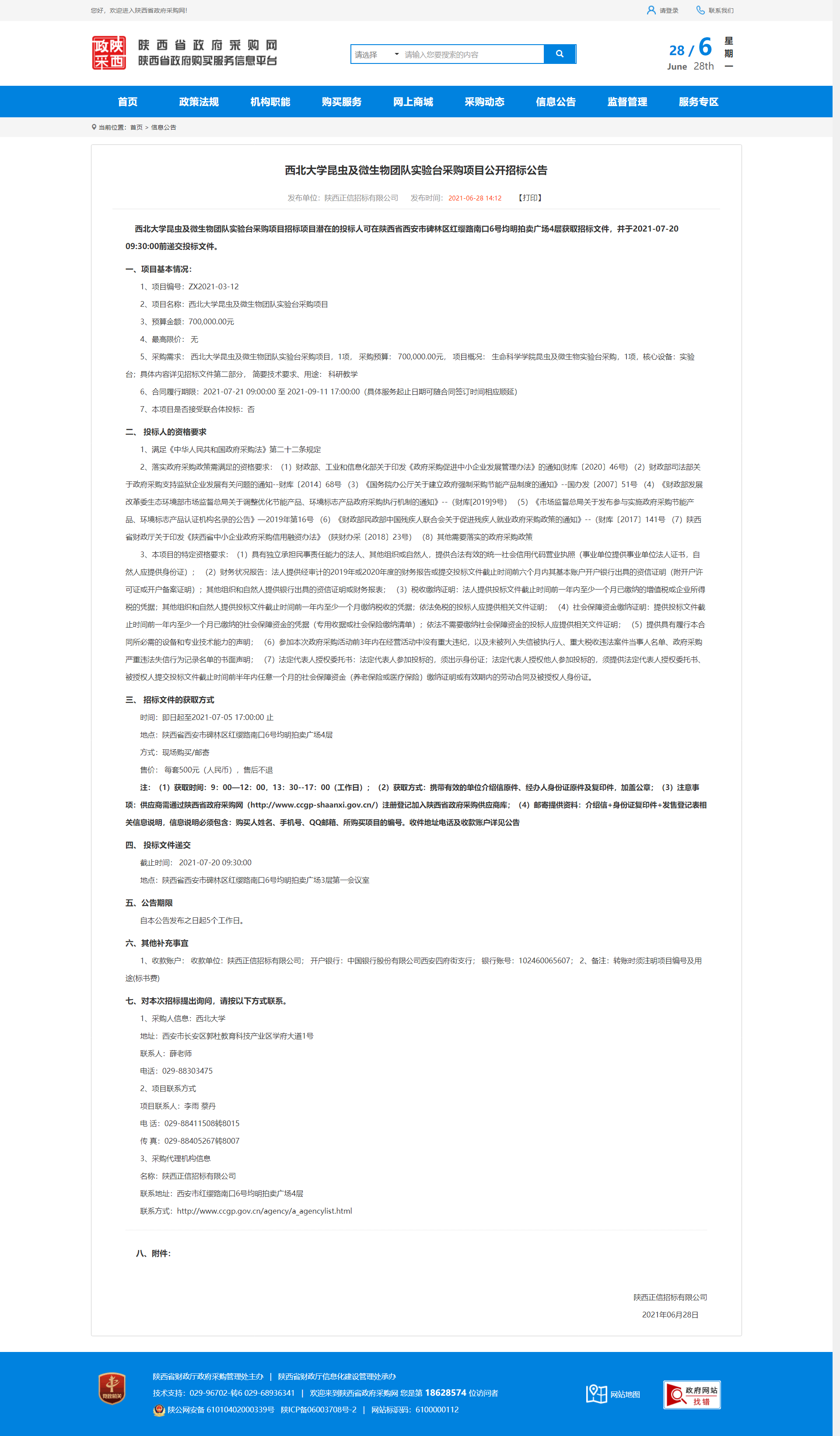 8868体育登录昆虫及微生物团队实验台采购项目公开招标公告 作者: 编辑:采购与招标办公室 时间:2021-06-28 原公告地址:http://www.ccgp-shaanxi.gov.cn/notice/noticeDetail.do?noticeguid=8a85be33791baa0f017a50bb65eb2e2b