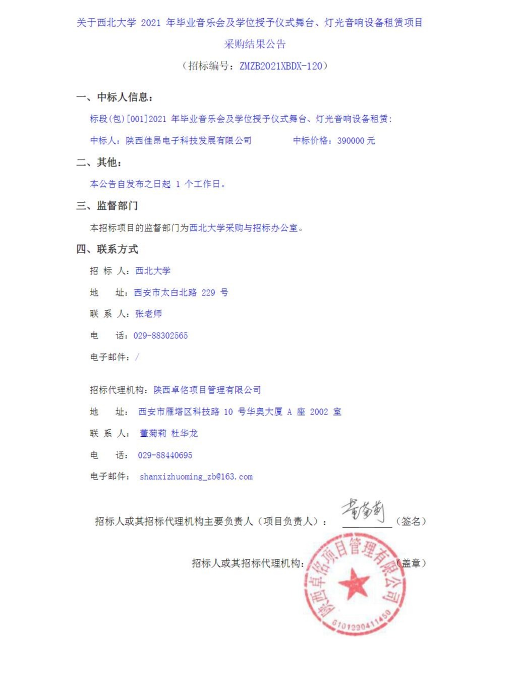 关于8868体育登录2021年毕业音乐会及学位授予仪式舞台、灯光音响设备租赁项目采购结果公告