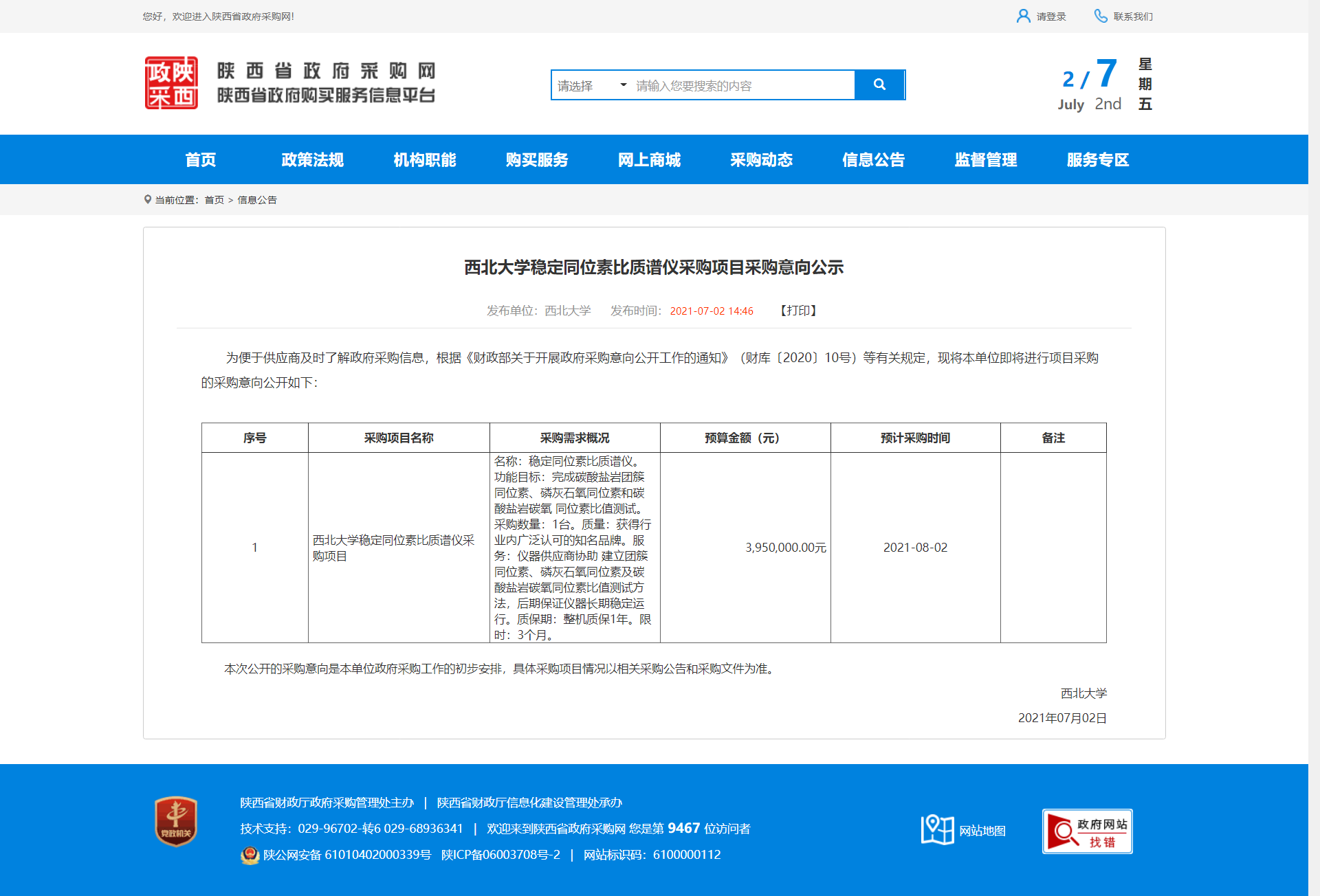 8868体育登录稳定同位素比质谱仪采购项目采购意向公示 作者: 编辑:采购与招标办公室 时间:2021-07-02 原公告地址:http://www.ccgp-shaanxi.gov.cn/notice/noticeDetail.do?noticeguid=8a85be317a51dcbc017a65e4a5e21daf