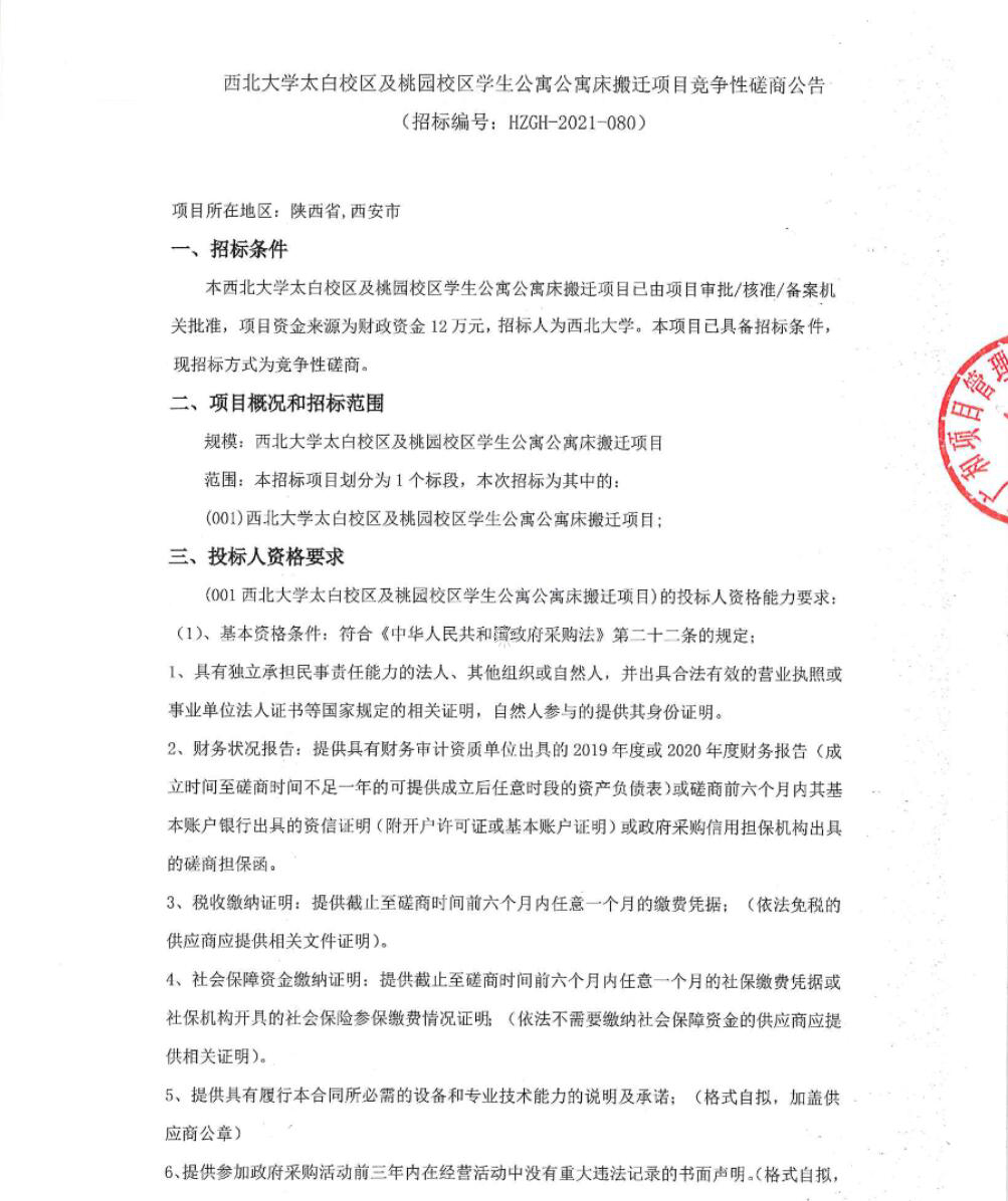 8868体育登录太白校区及桃园校区学生公寓公寓床搬迁项目