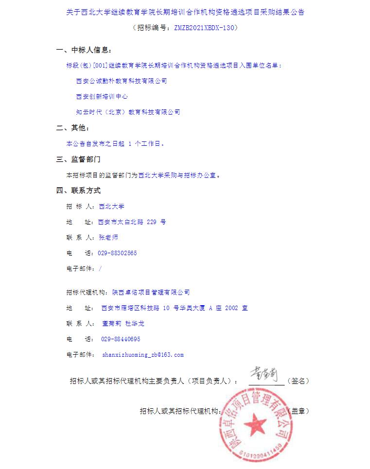 关于8868体育登录继续教育学院长期培训合作机构资格遴选项目采购结果公告