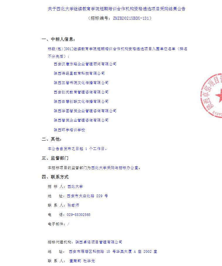 关于8868体育登录继续教育学院长期培训合作机构资格遴选项目采购结果公告