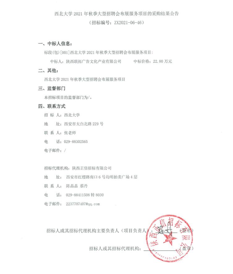 关于8868体育登录2021年秋季大型招聘会布展服务项目的采购结果公告