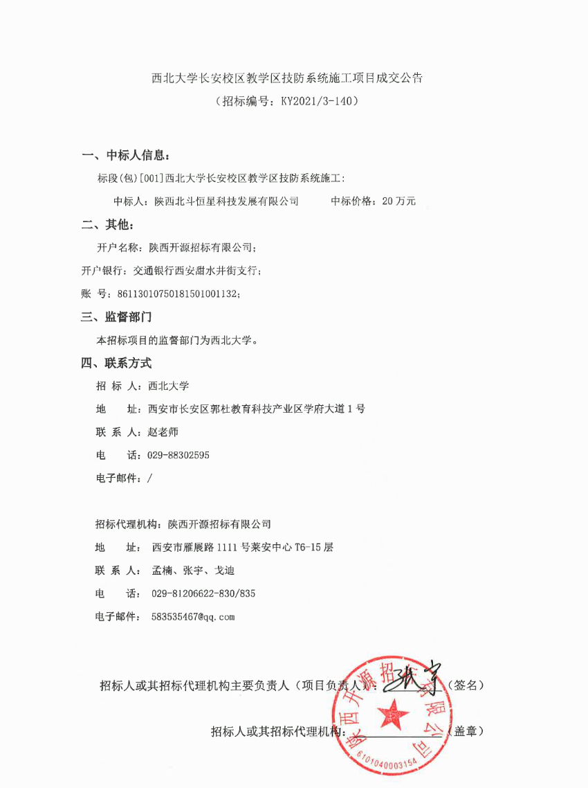 8868体育登录长安校区教学区技防系统施工项目成交公告