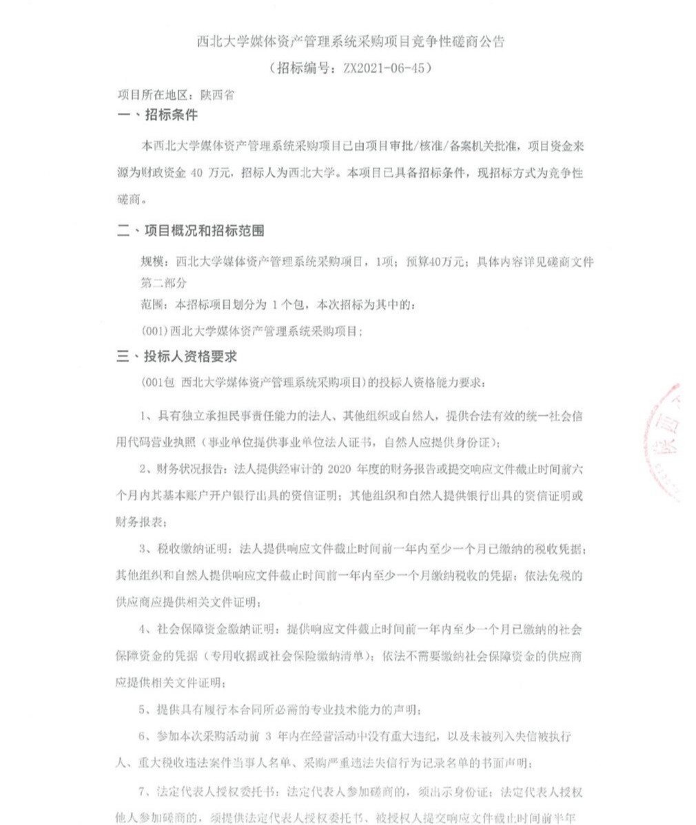 8868体育登录媒体资产管理系统采购项目竞争性磋商公告