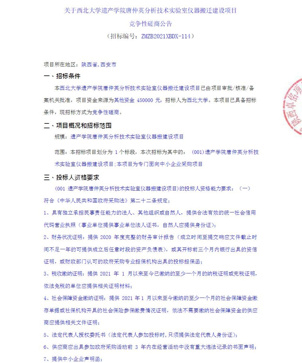 关于8868体育登录遗产学院唐仲英分析技术实验室仪器搬迁建设项目竞争性磋商公告