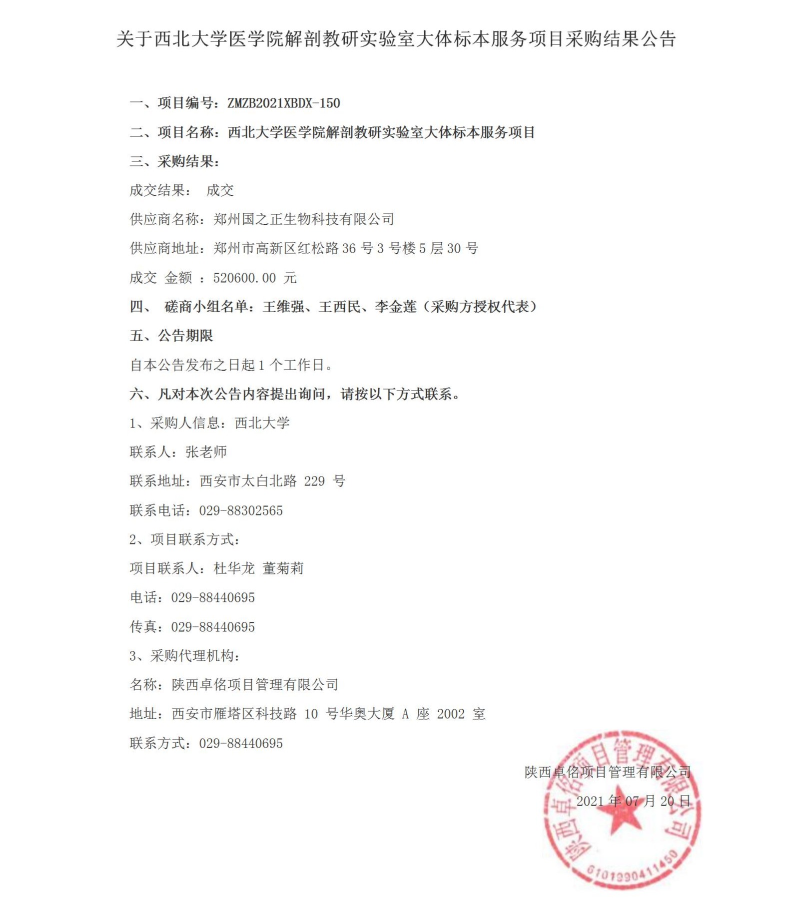 关于8868体育登录医学院解剖教研实验室大体标本服务项目采购结果公告