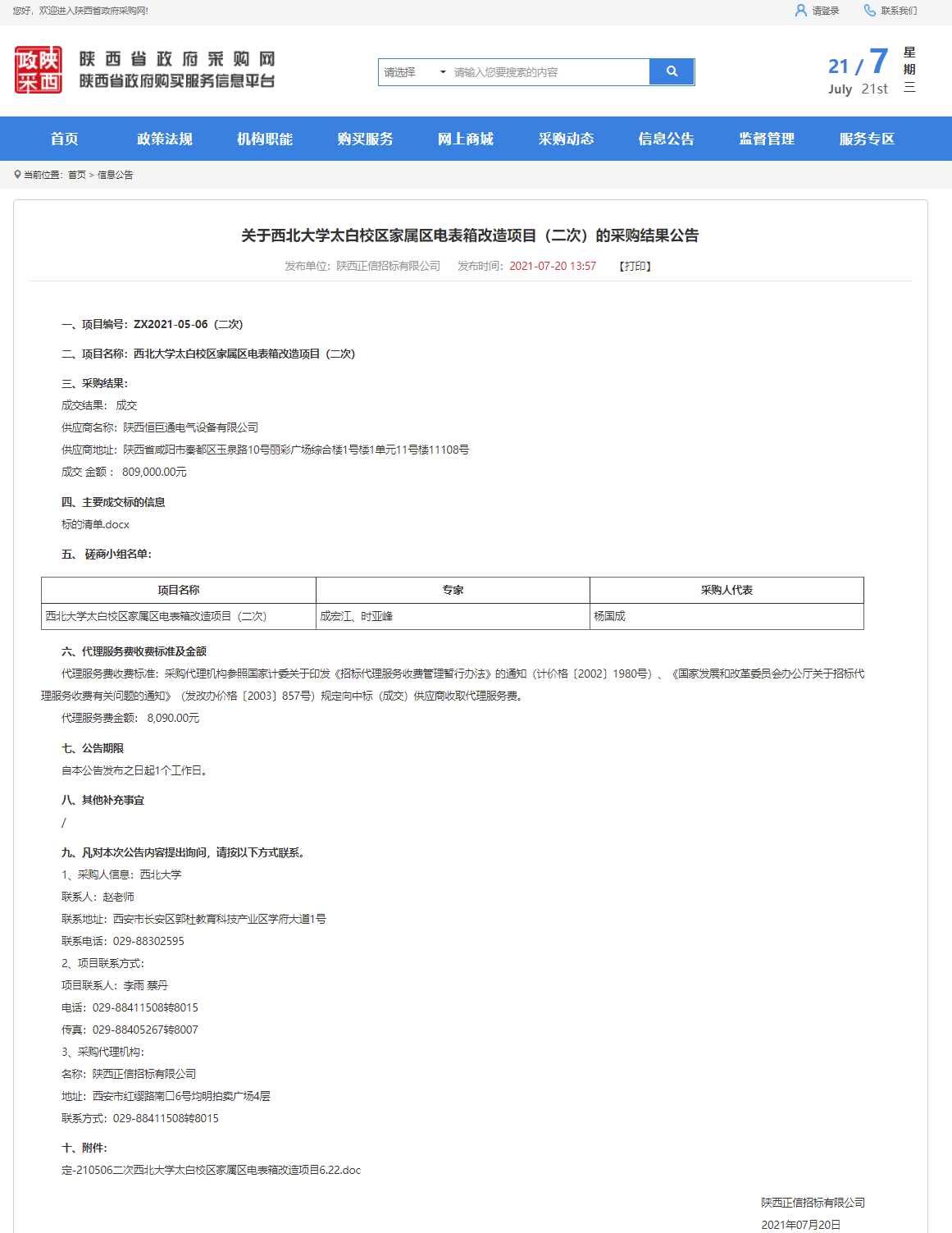 关于8868体育登录太白校区家属区电表箱改造项目(二次)的采购结果公告