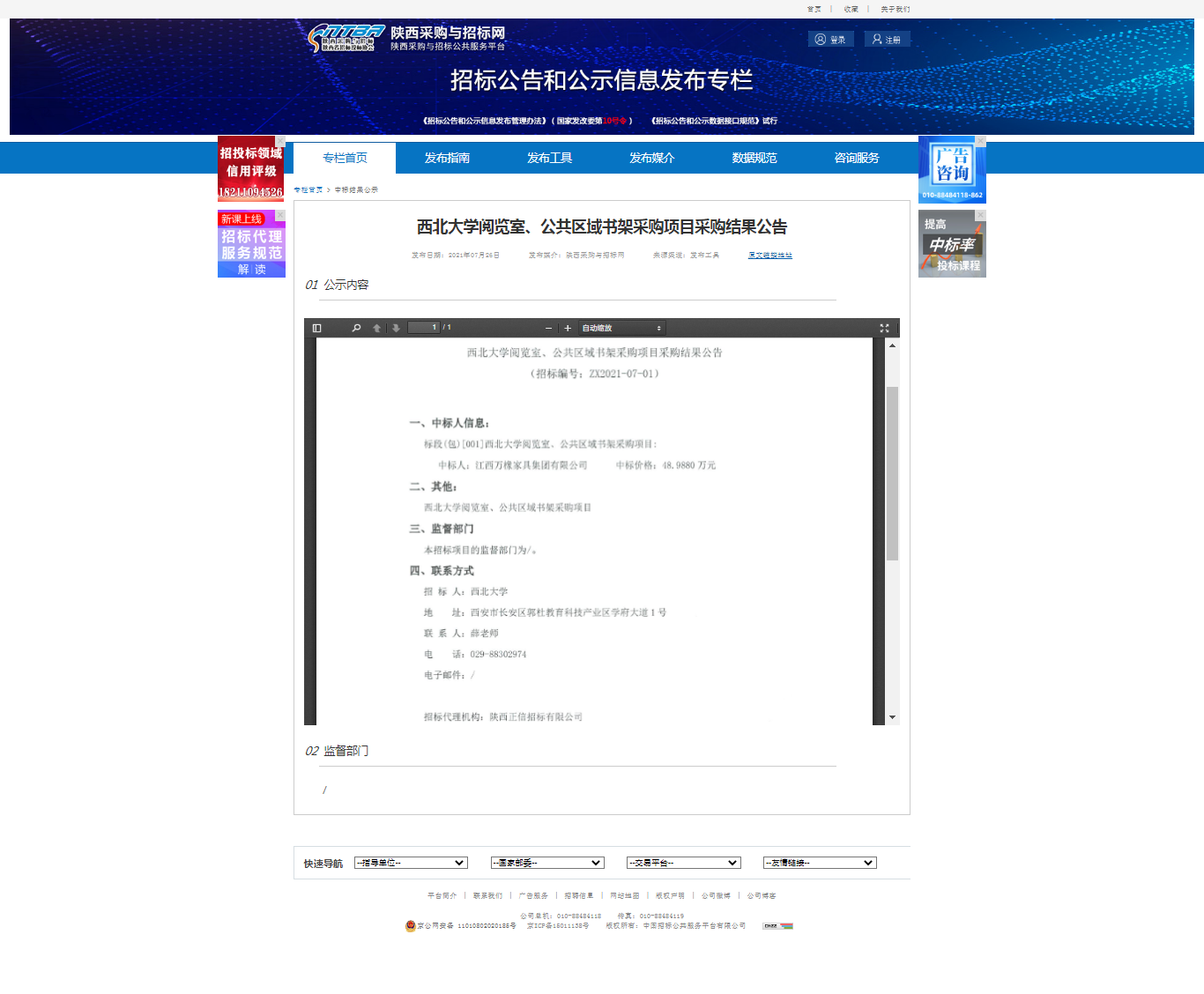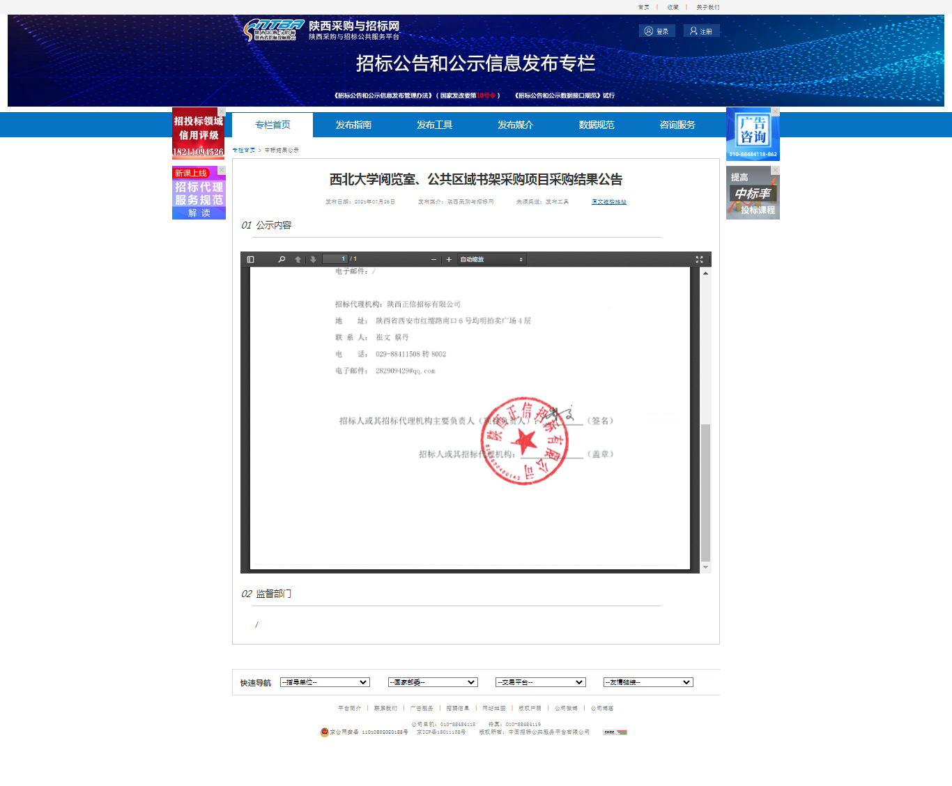8868体育登录阅览室、公共区域书架采购项目采购结果公告 作者: 编辑:采购与招标办公室 时间:2021-07-26 原公告地址:http://bulletin.sntba.com/resultBulletin/2021-07-26/323301.html