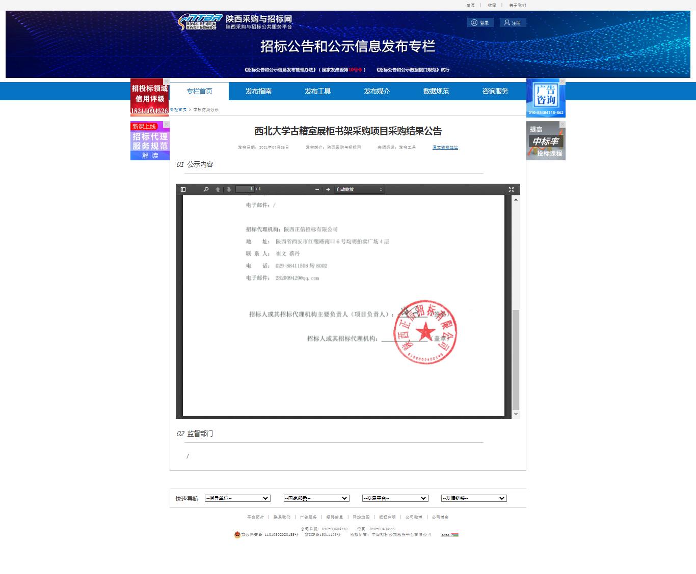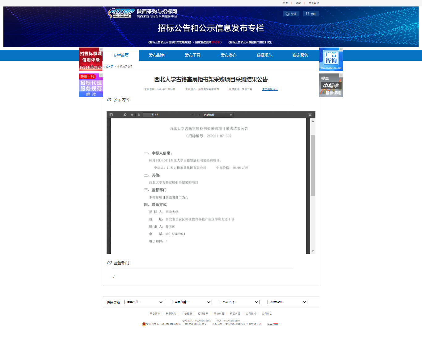 8868体育登录古籍室展柜书架采购项目采购结果公告 作者: 编辑:采购与招标办公实验室 时间:2021-07-26 原公告地址:http://bulletin.sntba.com/resultBulletin/2021-07-26/323299.html
