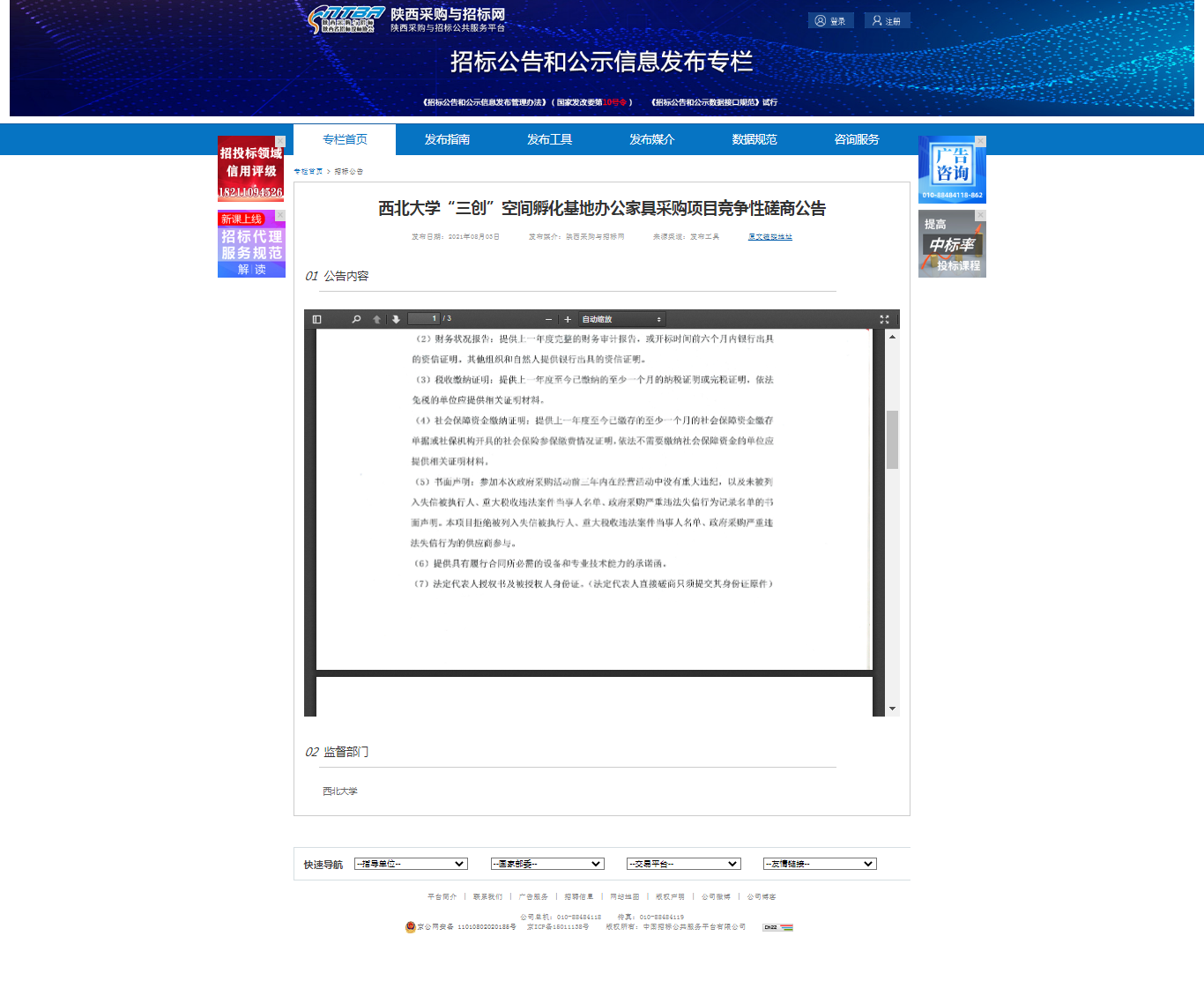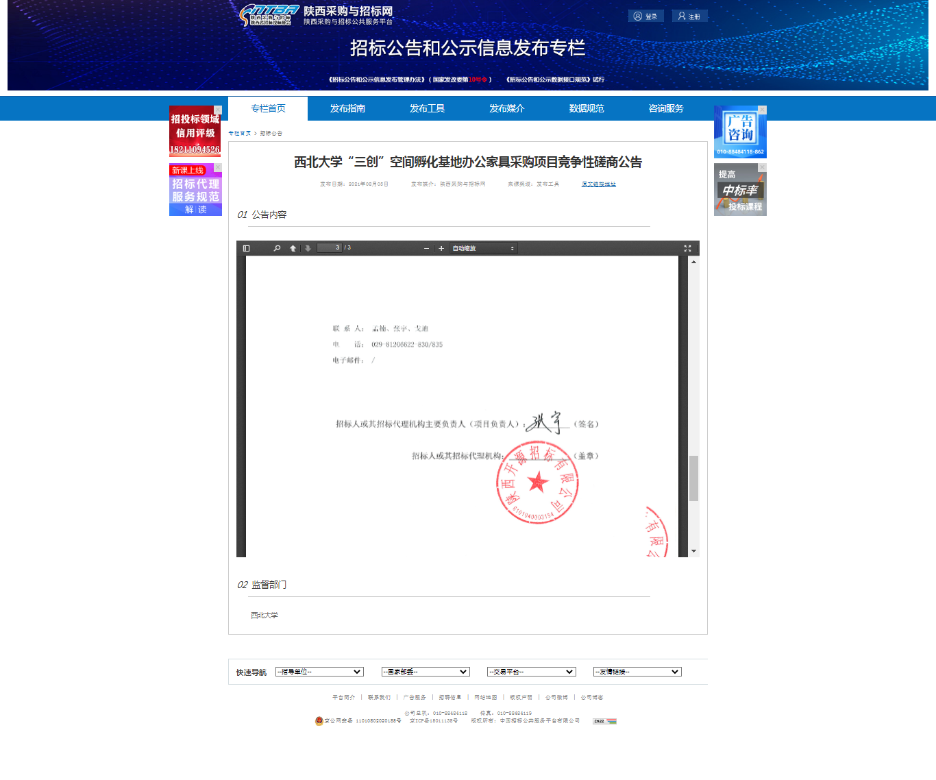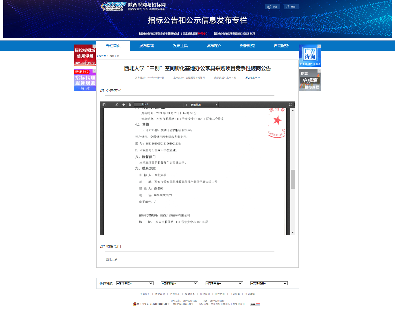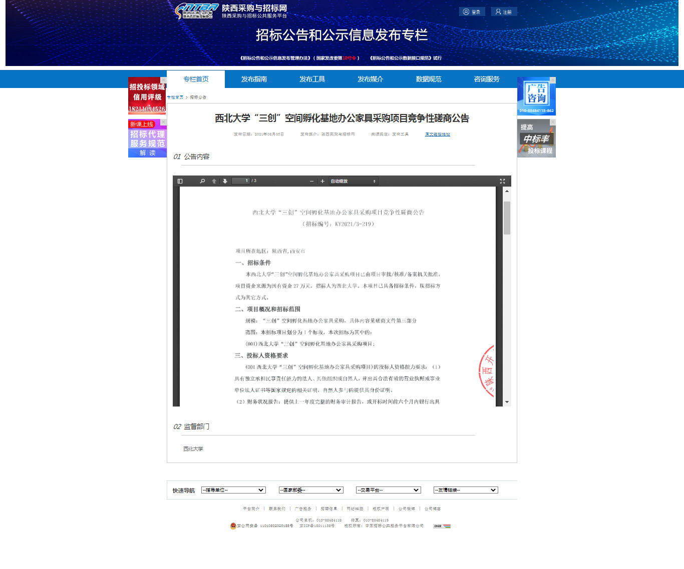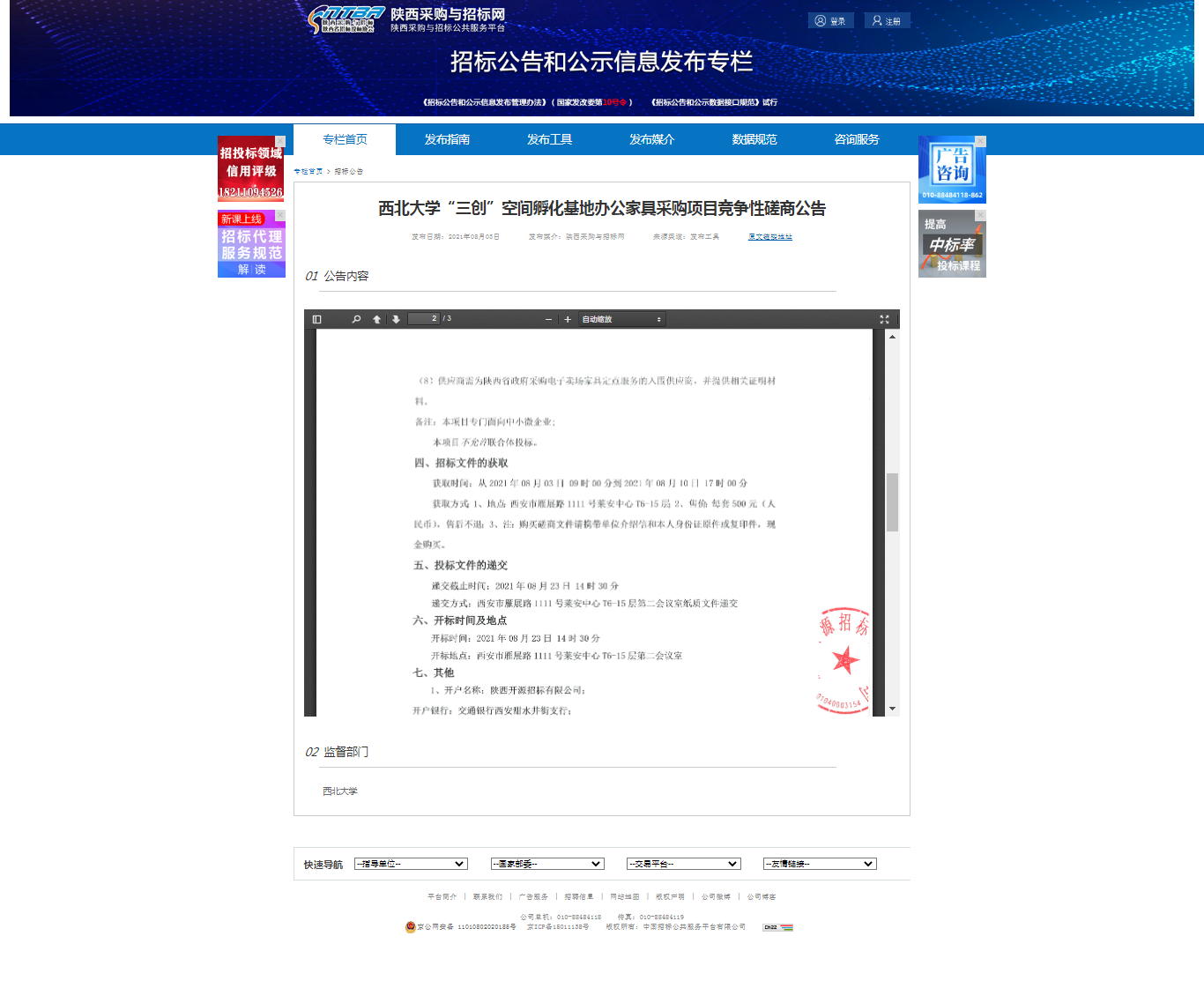 8868体育登录“三创”空间孵化基地办公家具采购项目竞争性磋商公告 作者: 编辑:采购与招标办公室 时间:2021-08-04 原公告地址:http://bulletin.sntba.com/biddingBulletin/2021-08-03/326513.html