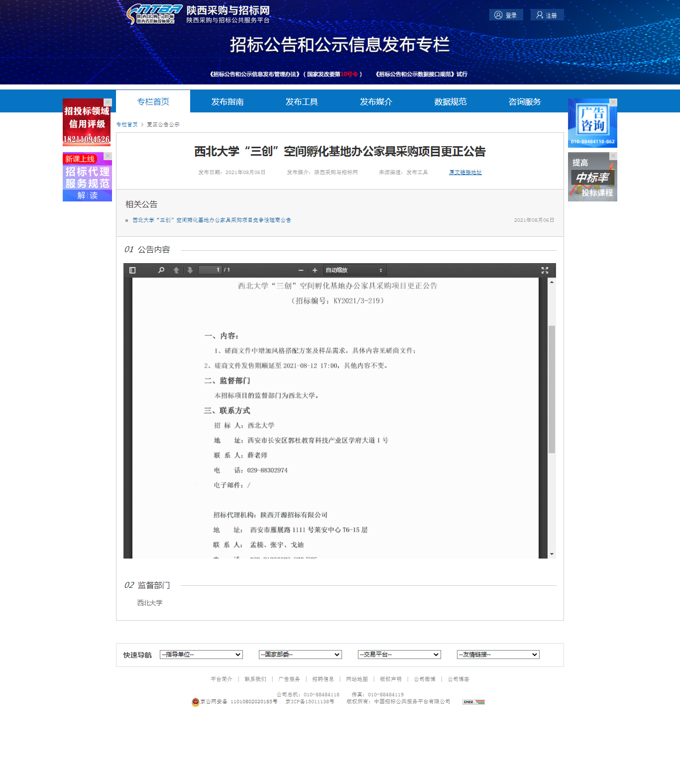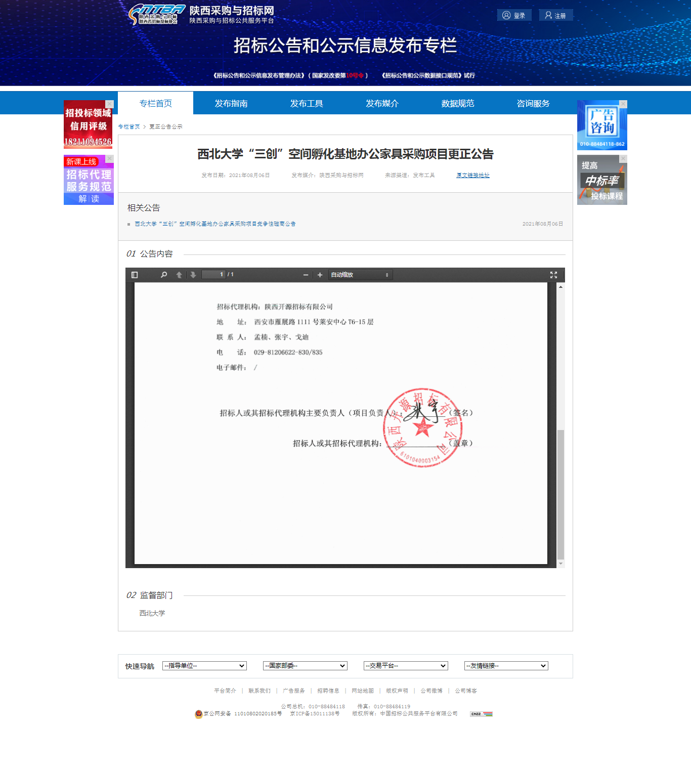 8868体育登录“三创”空间孵化基地办公家具采购项目更正公告 作者: 编辑:采购与招标办公室 时间:2021-08-06 原公告地址:http://bulletin.sntba.com/changeBulletin/2021-08-06/327902.html