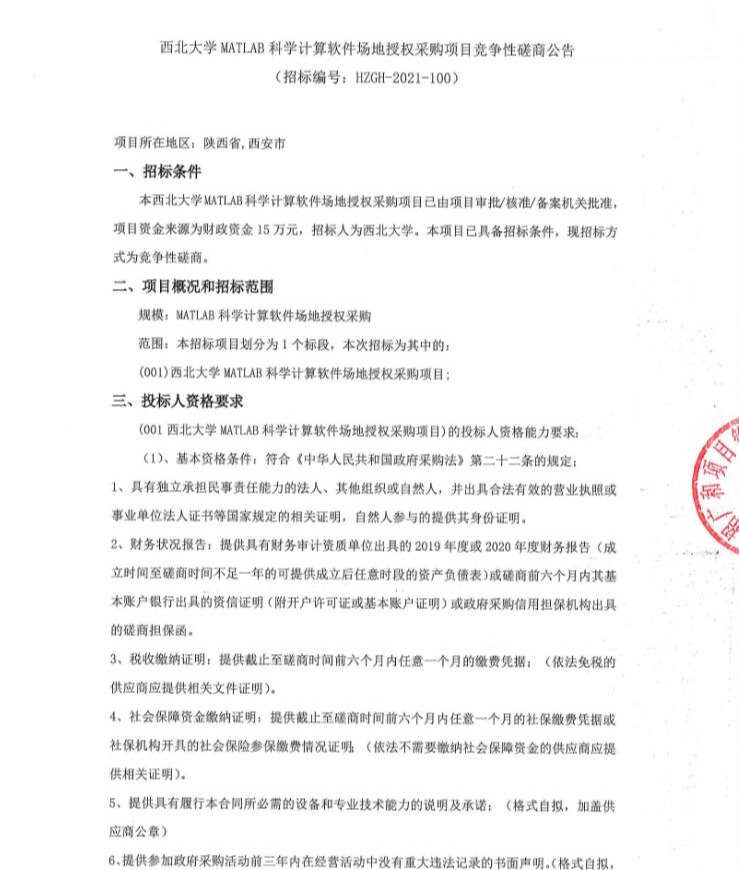 关于8868体育登录MATLAB科学计算软件场地授权采购项目竞争性磋商公告