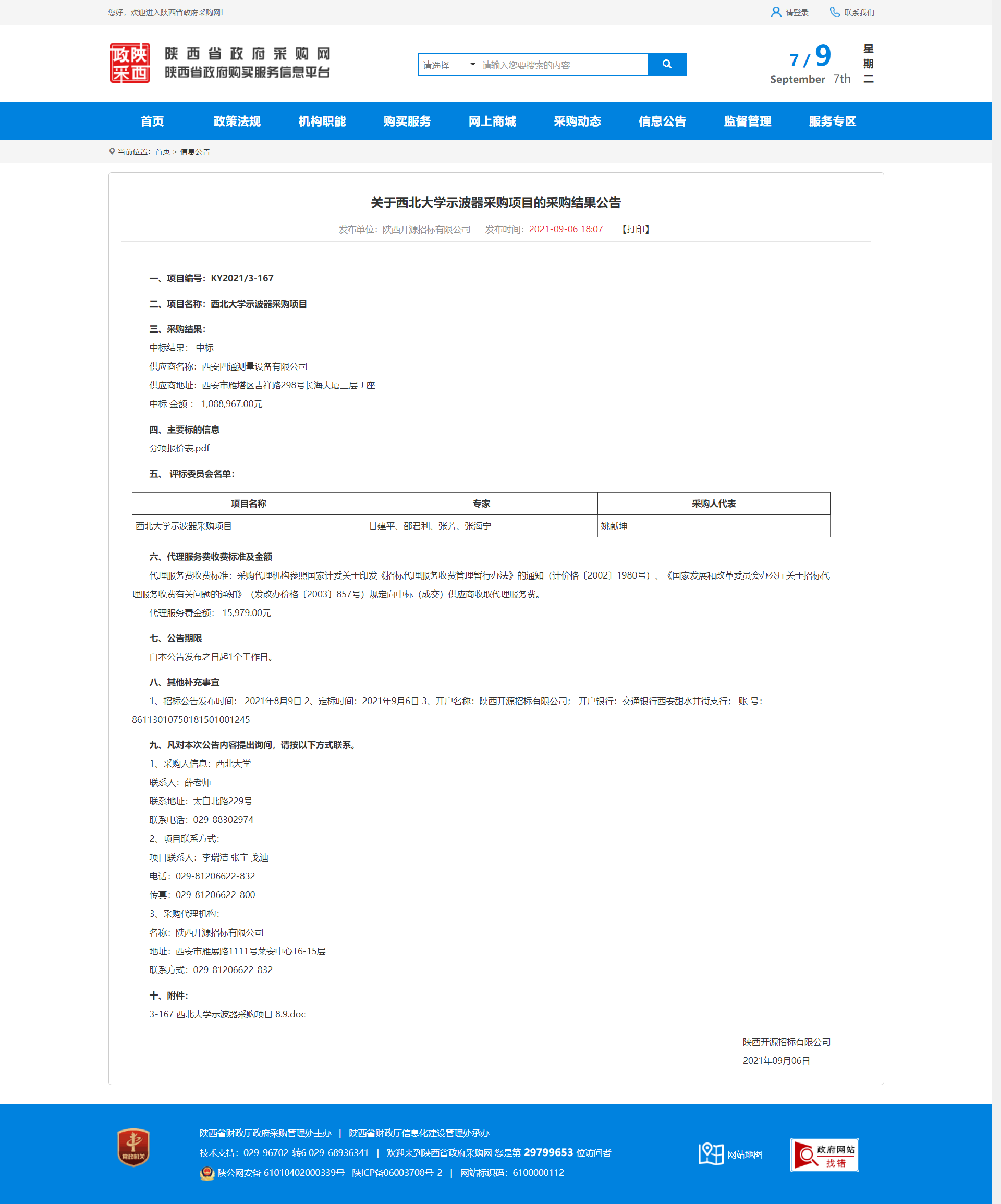 关于8868体育登录示波器采购项目的采购结果公告 作者: 编辑:采购与招标办公室 时间:2021-09-07 原公告地址:http://www.ccgp-shaanxi.gov.cn/notice/noticeDetail.do?noticeguid=8a85be347b04610d017bba92520e4e63