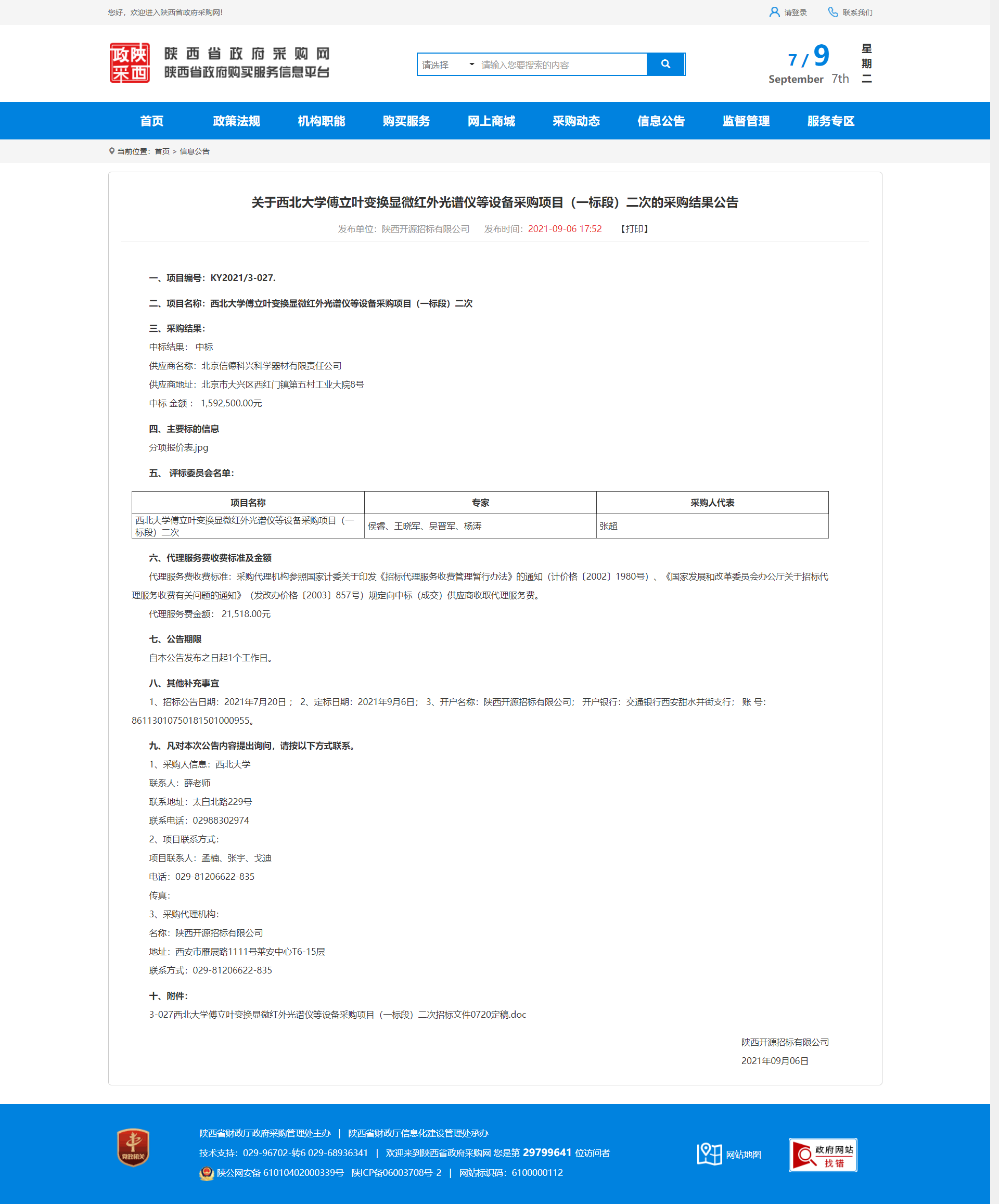 关于8868体育登录傅立叶变换显微红外光谱仪等设备采购项目(一标段)二次的采购结果公告 作者: 编辑:采购与招标办公室 时间:2021-09-07 原公告地址:http://www.ccgp-shaanxi.gov.cn/notice/noticeDetail.do?noticeguid=8a85be347b04610d017bba8364b14d06