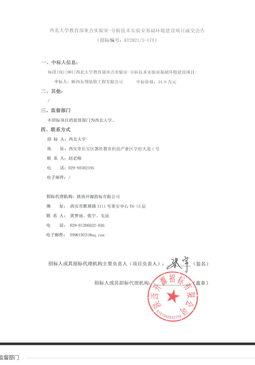 8868体育登录教育部重点实验室-分析技术实验室基础环境建设项目成交公告