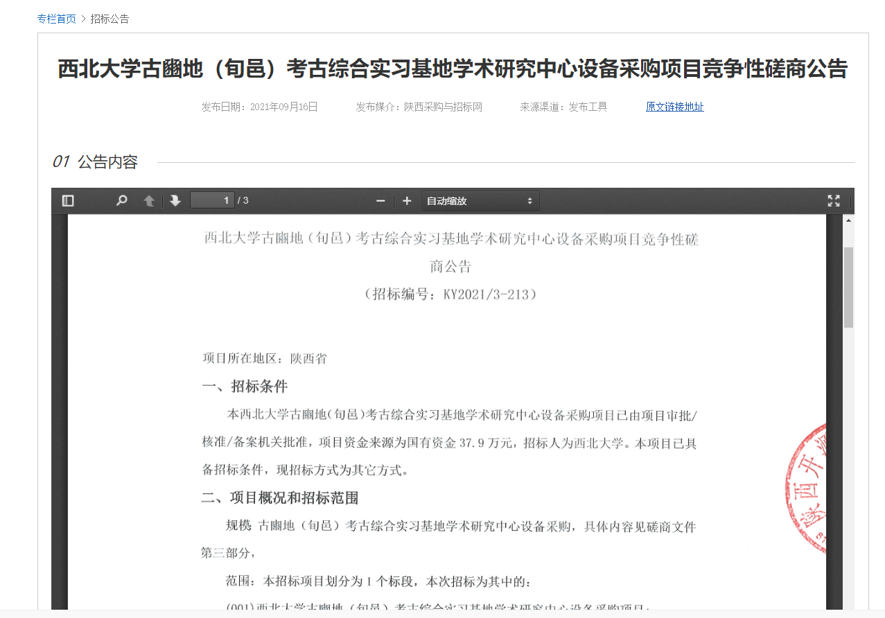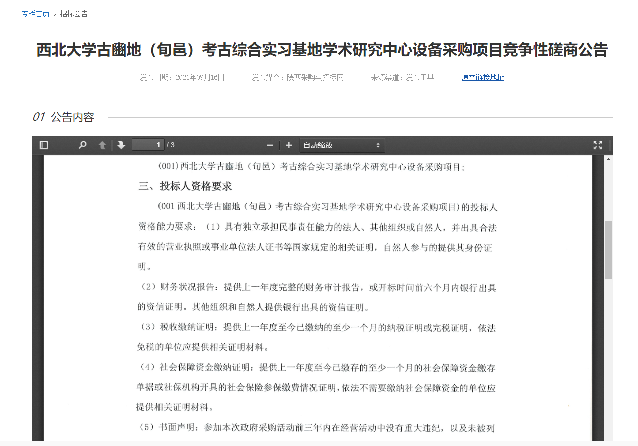 8868体育登录古豳地(旬邑)考古综合实习基地学术研究中心设备采购项目竞争性磋商公告 作者: 编辑:采购与招标办公室 时间:2021-09-17 原公告地址:http://bulletin.sntba.com/biddingBulletin/2021-09-16/343879.html